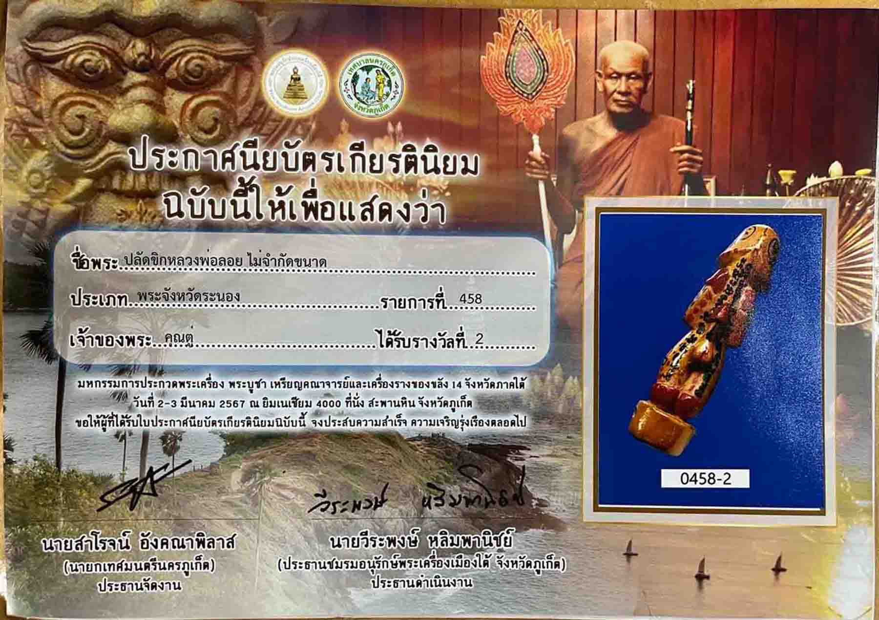 | | [ ชื่อพระ ] ปลัดขิก ๙ ยอด(หัว) (สวย แชมป์) พระอาจารย์ลอย วัดปากน้ำทะเล จ.ระนอง | | [ รายละเอียด ] รองแชมป์ ที่๒ งานประกวดพระเครื่อง ๑๔ จังหวัดภาคใต้ ๓มีค.๖๗ ภูเก็ต...