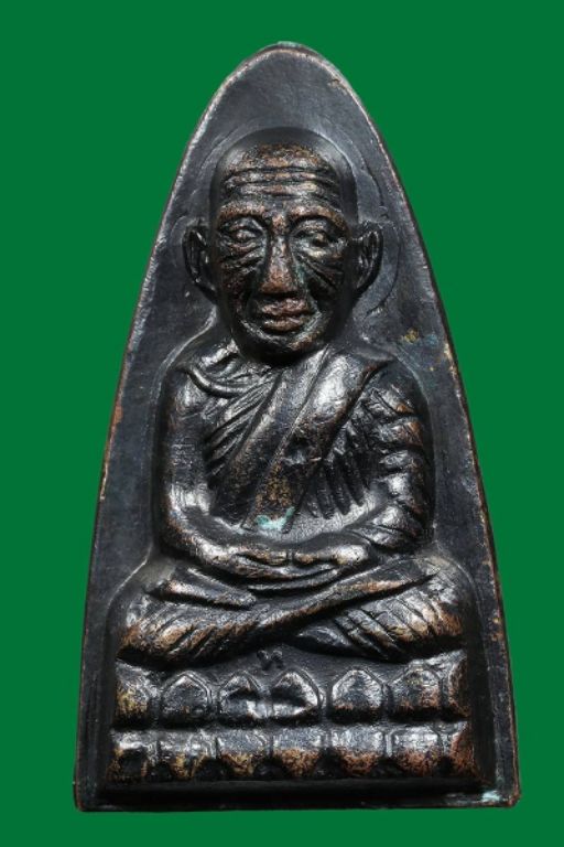 พระกลีบบัวหลวงพ่อทวด วัดช้างให้ รุน1 ปี2507 เนื้อทองเหลืองรมดำ ..(2)