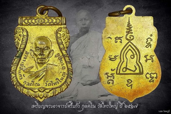 เหรียญอาจารย์สีแก้ว วัดไทรใหญ่ รุ่นสอง ปี 2517 กะไหล่ทอง