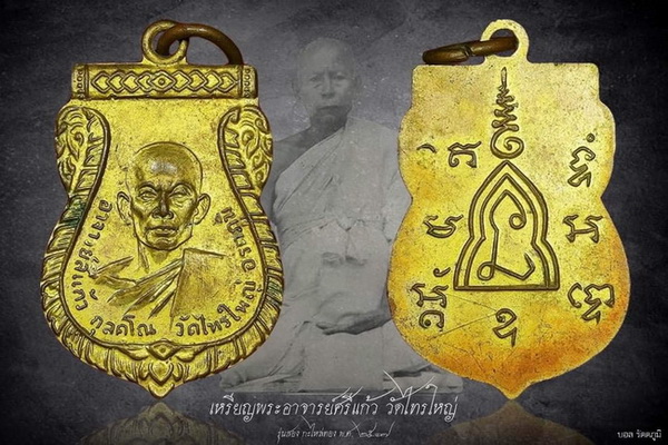 เหรียญอาจารย์สีแก้ว วัดไทรใหญ่ รุ่นสอง กะไหล่ทอง