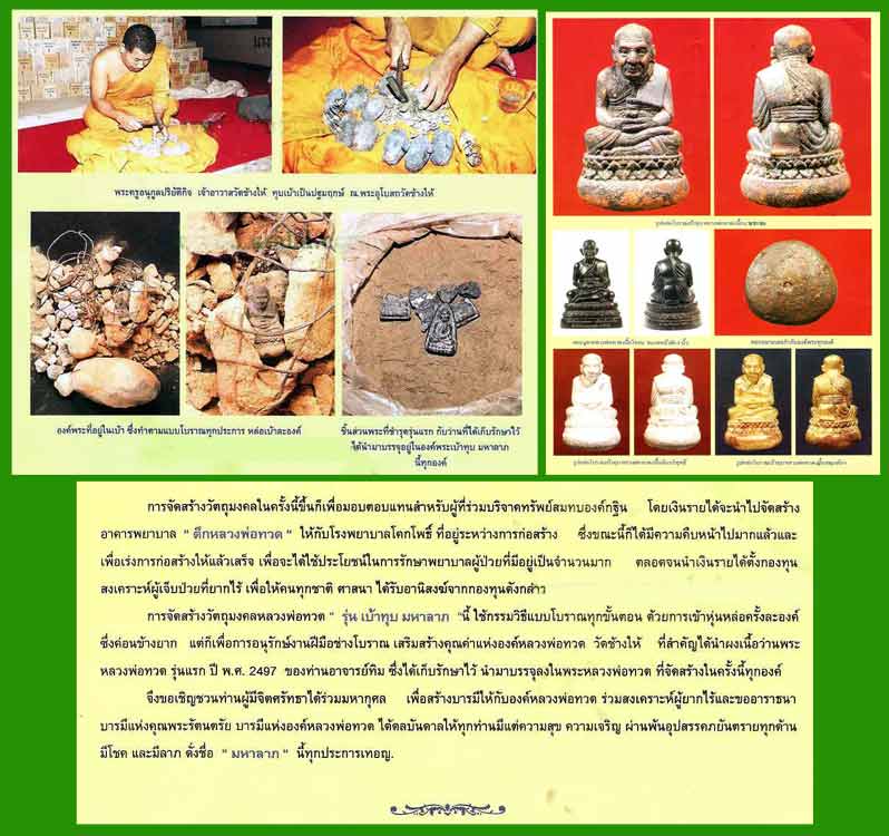 [ ÃÒÂÅÐàÍÕ´ ] Çѵ¶ØÁ§¤ÅËÅǧ¾èÍ·Ç´ “ÃØè¹àºéҷغÁËÒÅÒÀ” ËÃ×ÍàÃÕ¡ÍÕ¡ª×èÍÇèÒ “ÃØè¹¡°Ô¹ »Õ ¾.È. òõôð”´Óà¹Ô¹¡ÒèѴÊÃéÒ§â´Â ·èÒ¹¾ÃФÃÙ͹ءÙÅ»ÃÔÂѵԡԨ ËÃ×;èÍ·èÒ¹ÊÇÑÊ´Ôì ÍÃØâ³ à¨éÒÍÒÇÒÊÇÑ´ªéÒ§ãËé µÓ¹Ò¹¼Ùé¨Ñ´ÊÃéÒ§Çѵ¶ØÁ§¤ÅËÅǧ¾èÍ·Ç´ÂØ¤¡ÅÒ§ ÍѹÅ×ÍÅÑ蹨ӹǹËÅÒÂÃØè¹ ãªé¡ÃÃÁÇÔ¸ÕâºÃÒ³·Ø¡¢Ñ鹵͹ ´éÇ¡ÒÃà¢éÒËØè¹ËÅèͤÃÑé§ÅÐͧ¤ì â´ÂÁÕ¡ÒùӼ§à¹×éÍÇèÒ¹¾ÃÐËÅǧ¾èÍ·Ç´ÃØè¹áá »Õ ¾.È. 2497 ¢Í§¾ÃÐÍÒ¨ÒÃÂì·ÔÁ «Öè§ä´éà¡çºÃÑ¡ÉÒäÇé ¹ÓÁÒºÃèØÅ§ã¹¾ÃÐËÅǧ¾èÍ·Ç´·Ø¡Í§¤ì «Öè§¡ÒèѴÊÃéÒ§Çѵ¶ØÁ§¤Å㹤ÃÑé§¹Õé¢Ö鹡çà¾×èÍÁͺµÍºá·¹ÊÓËÃѺ¼Ùé·ÕèÃèÇÁºÃÔ¨Ò¤·ÃѾÂìÊÁ·ºÍ§¤ì¡°Ô¹ â´Âà§Ô¹ÃÒÂä´é¨Ð¹Ó仨ѴÊÃéÒ§ÍÒ¤ÒþÂÒºÒÅ “µÖ¡ËÅǧ¾èÍ·Ç´” ãËé¡Ñºâç¾ÂÒºÒÅ⤡⾸Ôì ·ÕèÍÂÙèÃÐËÇèÒ§¡ÒáèÍÊÃéÒ§ áÅйÓ仵Ñ駡ͧ·Ø¹Ê§à¤ÃÒÐËì¼Ùéà¨çº»èÇÂÂÒ¡äÃé »ÃСͺ¾Ô¸Õ¾Ø·¸ÒÀÔàÉ¡ àÁ×èÍÇѹ·Õè 1 ¾ÄȨԡÒ¹ ¾.È. 2540 ³ ¾ÃÐÍØâºÊ¶ÇÑ´ªéÒ§ãËé ¨.»ÑµµÒ¹Õ â´Â¾ÃÐÍÒ¨ÒÃÂì¹Í§ ÇÑ´·ÃÒ¢ÒÇ áÅФ³Ò¨ÒÃÂìÊÒÂËÅǧ¾èÍ·Ç´ ¨Ó¹Ç¹¡ÒèѴÊÃéÒ§ »ÃСͺ´éÇ à¹×éͷͧ¤Ó 199 ͧ¤ì à¹×éÍà§Ô¹ 1,999 ͧ¤ì à¹×éÍʵҧ¤ìà¡èÒ (·Í§·Ô¾Âì) 2,999 ͧ¤ìáÅÐà¹×é͹ÇâÅËÐ 9,999 ͧ¤ì áÅÐÁÕãºà¡ÕÂõԺѵáӡѺËÁÒÂàÅ¢»ÃШÓͧ¤ì¾ÃÐ