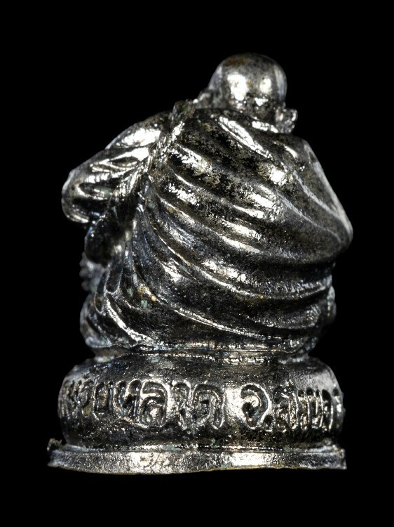 [ ชื่อพระ ] รูปหล่อหลวงปู่สีมั่น วัดห้วยหลาด ปี 2537 กะไหล่เงิน ก้นเรียบ