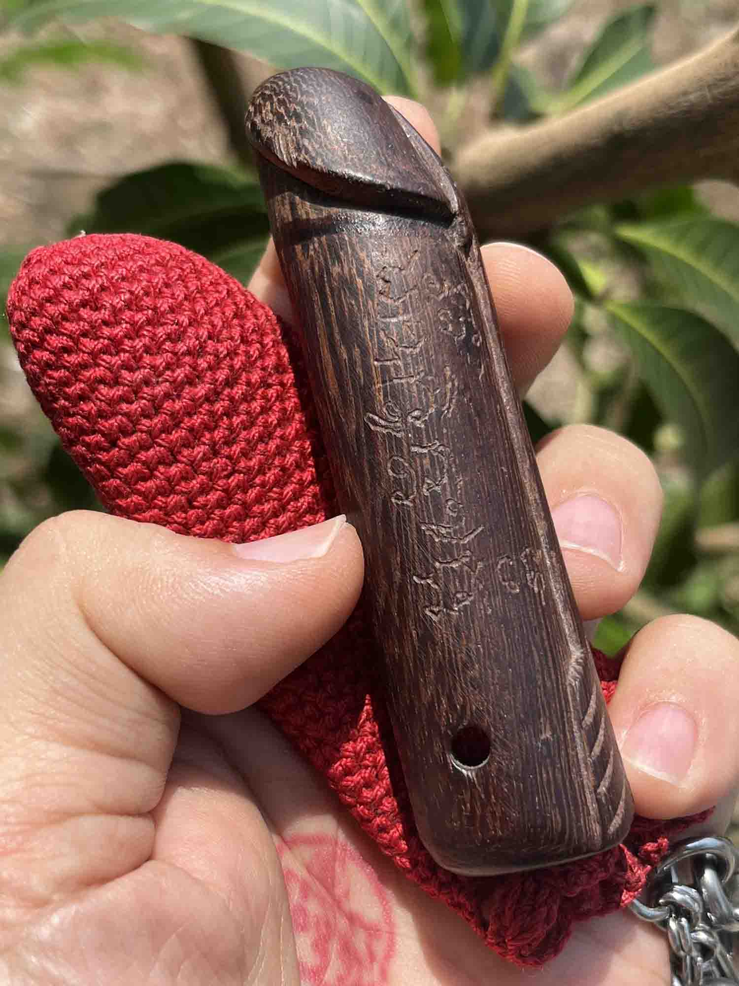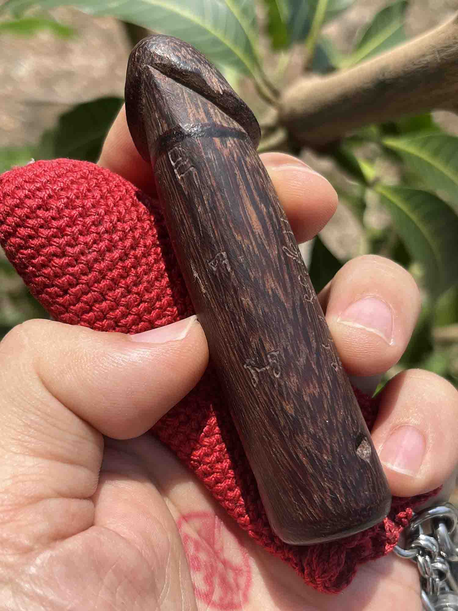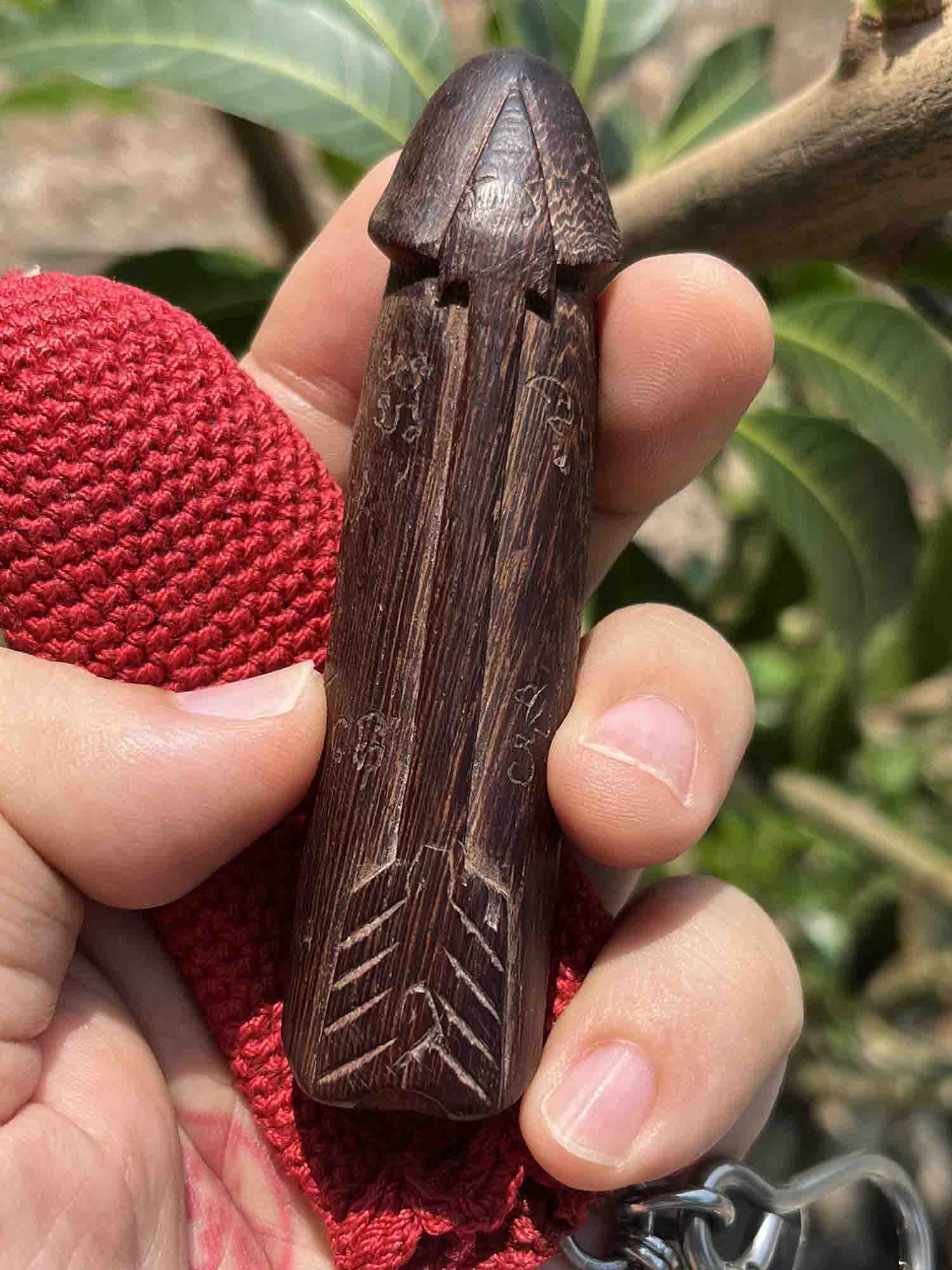 ขนาด 3.5 นิ้ว ไม้แก่นมะขามฟ้าผ่า ยุคต้นๆ จารพิเศษหัวศร-หางศร อะ อิ อุ(สุดยอดหายาก)!!!