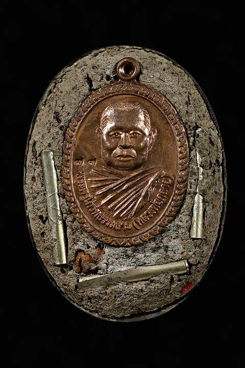เหรียญรุ่นแรก พ่อท่านกลาย วัดห้วยหลาด ปี 2554 ทองแดงรมดำ (เหรียญแชมป์งานสุราษฎร์ฯ)