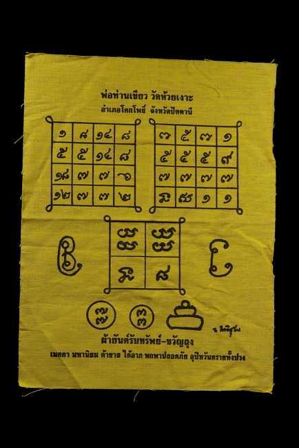 [ ชื่อพระ ] ผ้ายันต์รับทรัพย์ - ขวัญถุง พ่อท่านเขียว วัดห้วยเงาะ