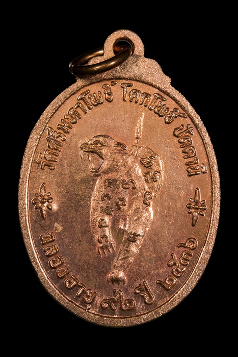 เหรียญหลังเสือ หลวงปู่แดง วัดศรีมหาโพธิ์ ปี 2536 เนื้อทองแดง