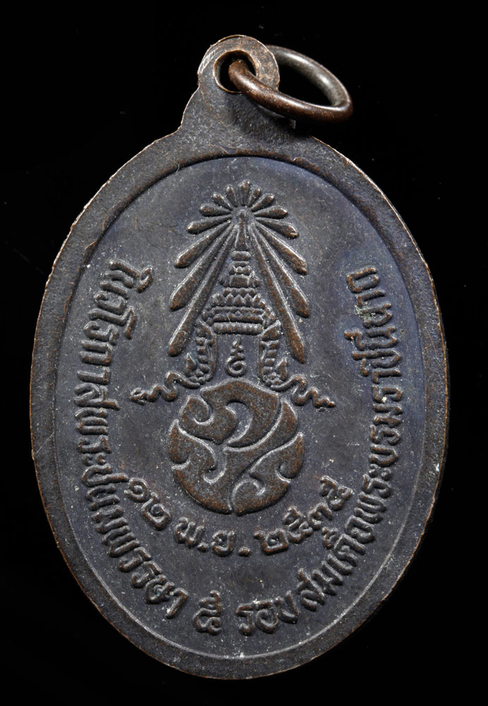 เหรียญ หลวงพ่อแช่ม วัดฉลอง ภูเก็ต หลัง ภปร. เนื้อทองแดง ปี 2527