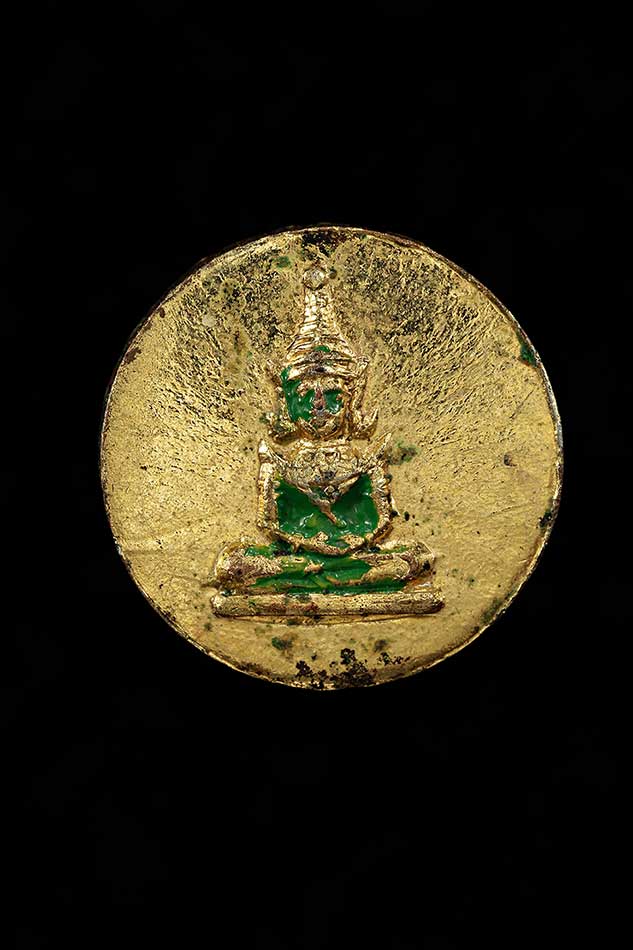 [ ชื่อพระ ] หัวแหวน หลวงพ่อทวด วัดช้างให้ 05 กะไหล่ทอง หลังพระแก้วมรกต
