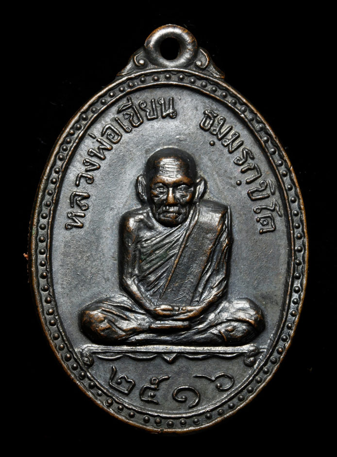 [ รายละเอียด ] เหรียญปั๊มหลวงพ่อเขียนหลังหลวงพ่อเงิน เนื้อทองแดงรมดำ ปี 2516 แท้ มาตรฐานสากลครับ สภาพสวยมากครับ ผิวหิ้งครับ