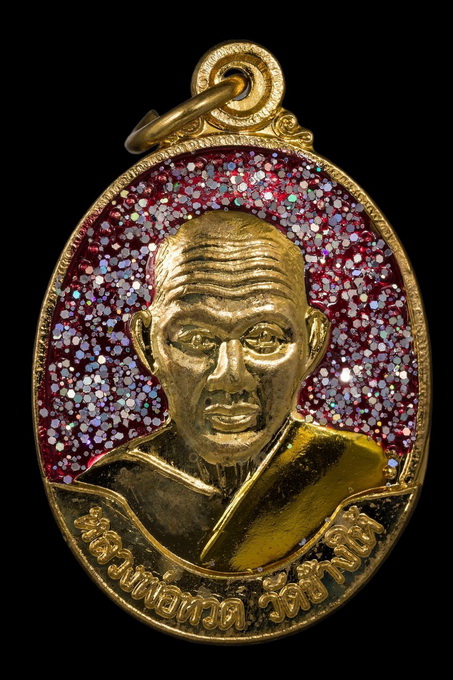 เหรียญเม็ดแตง ลพ.ทวด วัดช้างให้ กะไหล่ทองลงยาแดงเคลือบเหลือง