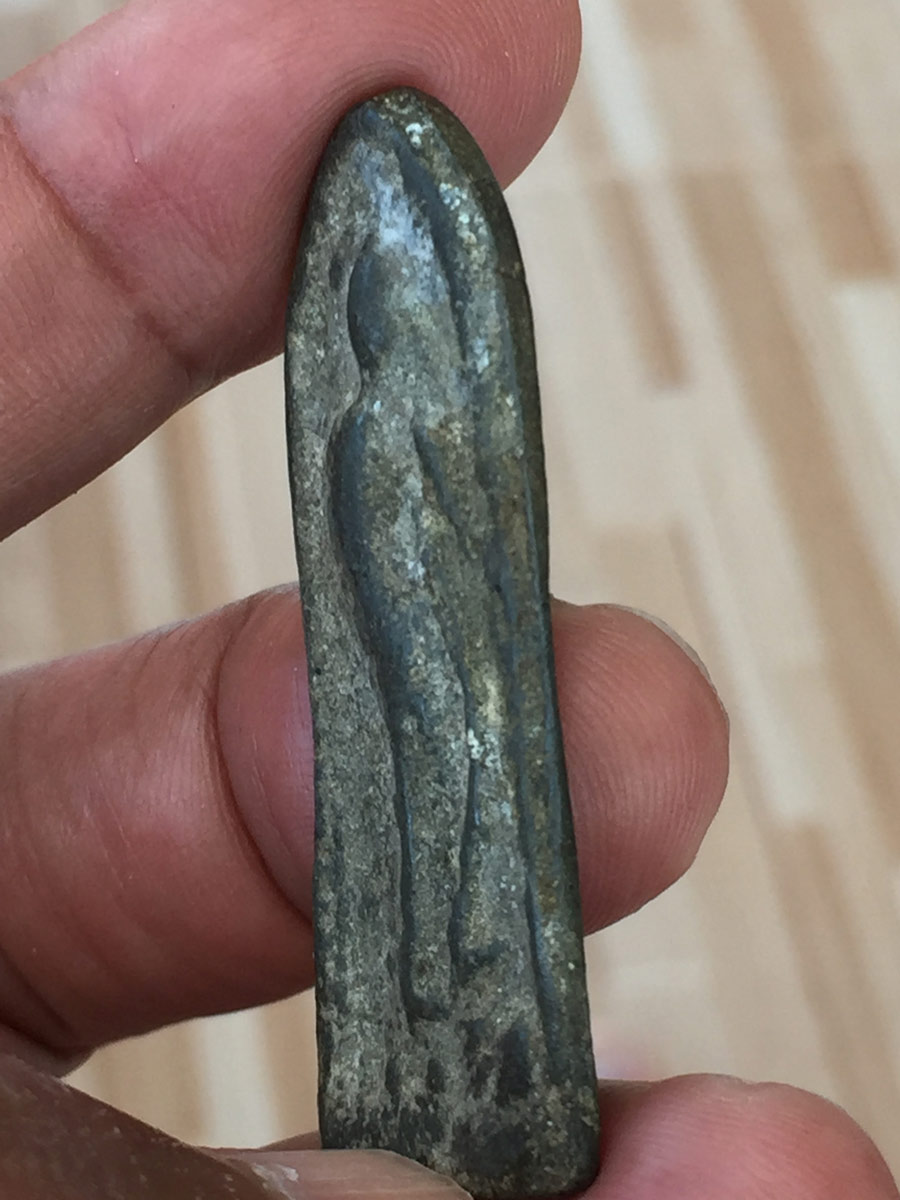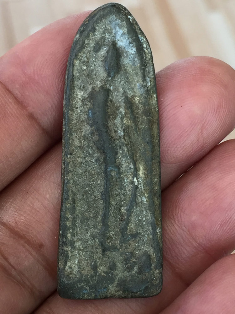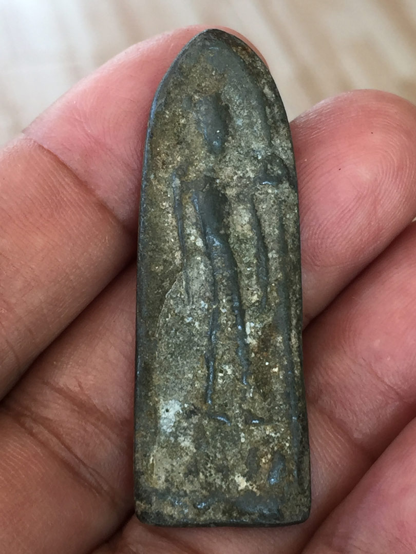 [ ชื่อพระ ] พระลีลากำแพง พิมพ์ 2 หน้า เนื้อชินเขียว