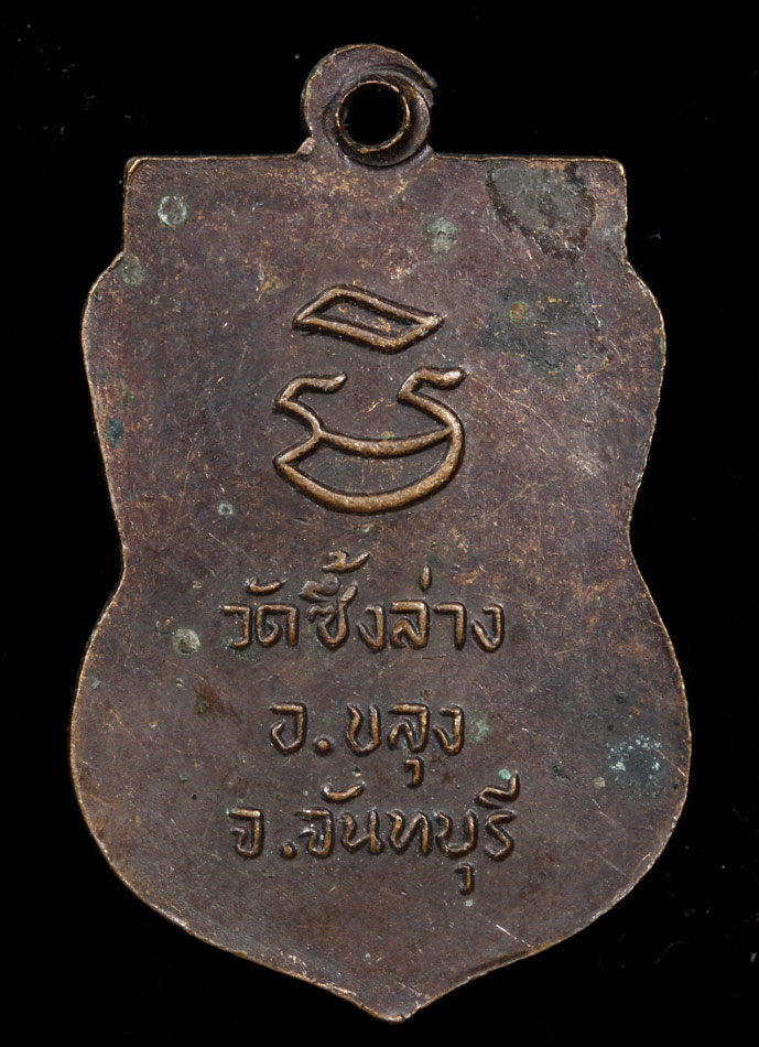 [ รายละเอียด ] เหรียญรูปเหมือนพิมพ์ครึ่งองค์ทรงเสมาหลวงพ่อฆ้อง(เอาะ) ปทุมสุวณฺโณ วัดซึ้งล่าง อ.ขลุง จ.จันทบุรี รุ่นแรก เนื้อทองแดงรมดำ แท้ สวย ผิวหิ้งเดิมๆครับ