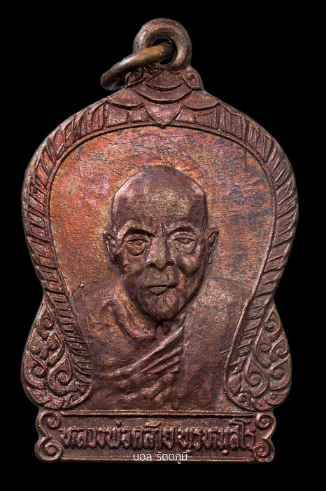 เหรียญรุ่นแรก ลพ.กลาย วัดห้วยหลาด ปี 2554 ทองแดงรมดำ