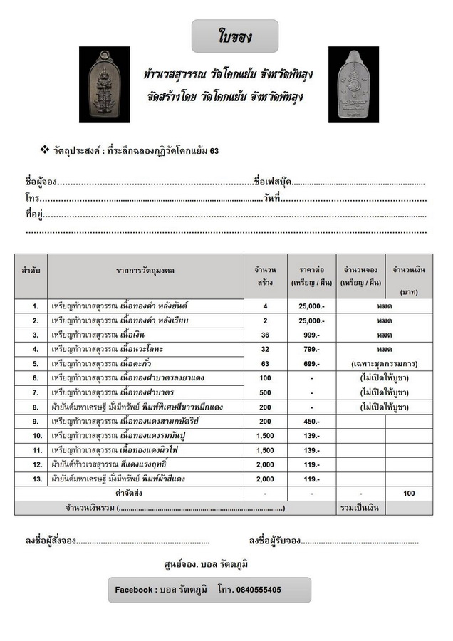 | | [ ชื่อพระ ] ท้าวเวสสุวรรณ พ่อท่านเอียด วัดโคกแย้ม รุ่นแรก ปี 2563 เนื้อทองฝาบาตร กรรมการ (1) | | [ รายละเอียด ] ท้าวเวสสุวรรณ พ่อท่านเอียด วัดโคกแย้ม รุ่นแรก สร้างกุฏิสงฆ์ ปี 2563 เนื้อทองฝาบาตร กรรมการ จำนวนสร้าง 500 เหรียญ