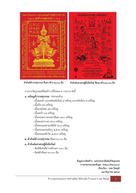 | | [ ชื่อพระ ] ท้าวเวสสุวรรณ พ่อท่านเอียด วัดโคกแย้ม รุ่นแรก สร้างกุฏิสงฆ์ ปี 2563 | | [ รายละเอียด ] ท้าวเวสสุวรรณ พ่อท่านเอียด วัดโคกแย้ม รุ่นแรก สร้างกุฏิสงฆ์ ปี 2563 เนื้อทองฝาบาตร กรรมการ จำนวนสร้าง 500 เหรียญ พ่อท่านเอียด วัดโคกแย้ม รุ่นแรก ปลุกเสก 16 วาระ ถือเป็น โสฬสมงคล โดยพระเกจิอาจารย์ล้วนแต่ทรงวิทยาคุณทั้งสิ้น โดยมีวาระต่างๆ ดังนี้วาระที่ 1 พ่อท่านหวง พระครูวิบูลธรรมเสวี เจ้าอาวาสวัดโพธิ์ตำนานวาระที่ 2 พระครูสิทธิการโสภณ (พ่อท่านผ่อง ฐานุตฺตโม)เจ้าอาวาสวัดแจ้งวาระที่ 3 พระครูจิรธรรมคุณ พ่อท่านเจน คุณากโร เจ้าอาวาสวัดปรางหมู่ในวาระที่ 4 พ่อท่านศิริ พระครูวิบูลย์ศิริวัฒน์ วัดบรรพตพินิตวาระที่ 5 พ่อท่านพระครูเล็ก ปุญฺญสโร อดีตเจ้าอาวาสวัดนาปะขอ(อัญเชิญ)วาระที่ 6 พ่อท่านปาน จนฺทสุวณฺโณ พระครูสิริจันทโชติ เจ้าอาวาสวัดเขตตาราม(วัดทุ่งข่า)วาระที่ 7 หลวงพ่อพระครูอดุลคุณาธาร พ่อท่านหวน เจ้าอาวาสวัดนิคมประทีป (โคกหล่อ)วาระที่ 8 หลวงพ่อพระครูโอภาสธรรมวิมล พ่อท่านนวน เจ้าอาวาสวัดแจ้งวาระที่ 9 หลวงพ่อพระครูประภัศร์ธรรมโสภณ พ่อท่านดำ เจ้าอาวาสวัดโคกพิกุลวาระที่ 10 พระครูสุเทพธรรมโชติ พ่อท่านอิ้น ธมฺมโชโต เจ้าอาวาสวัดนิคมเทพาวาระที่ 11 พ่อท่านพรมแก้ว นนฺทิโย ตาหลวงแก้ว วัดแหลมพ้อวาระที่ 12 พระครูสิริธรรมทัศน์ พ่อท่านวาส สิริธมฺโม เจ้าอาวาสวัดตรงบนวาระที่ 13 พ่อท่านชัย ธมฺมธีโร พระครูเกษมธรรมธร เจ้าอาวาสวัดเขาตาสักวาระที่ 14 ปลุกเสก 3 รูป พ่อท่านเอียด วัดโคกแย้ม, พ่อท่านแว่น พระครูพุทธเจติยาภิมณฑ์ วัดเจดีย์(ไอ้ไข่), พระอาจารย์ติว วัดโคกแย้มวาระที่ 15 หลวงพ่อผล อิสสโร พระครูสังวรธรรมจารี วัดทุ่งนารีวาระที่ 16 ปลุกเสกใหญ่ วัดโคกแย้ม พ่อท่านเอียด วัดโคกแย้ม, พ่อท่านดำ วัดโคกพิกุล, หลวงพ่อท่านเจ้าคุณสัมพันธ์ วัดคูหาสวรรค์, พระอาจารย์ติว วัดโคกแย้ม, พ่อท่านเจน วัดปรางค์หมู่ใน, พ่อท่านยอม วัดทุ่งยาว | [ ราคา ] ฿999999 [ สถานะ ] โชว์พระ