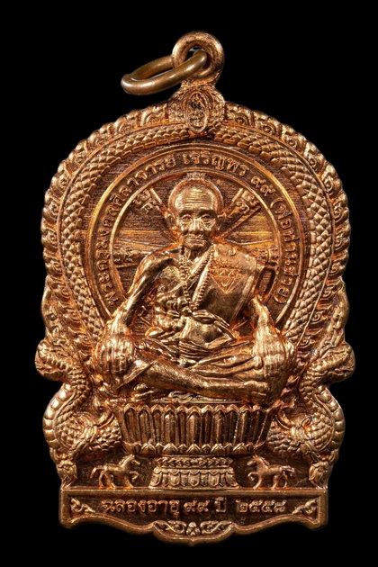 เหรียญรุ่นแรก ลพ.กลาย วัดห้วยหลาด ปี 2554 ทองแดงรมดำ