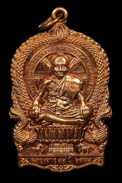 เหรียญรุ่นแรก ลพ.กลาย วัดห้วยหลาด ปี 2554 ทองแดงรมดำ