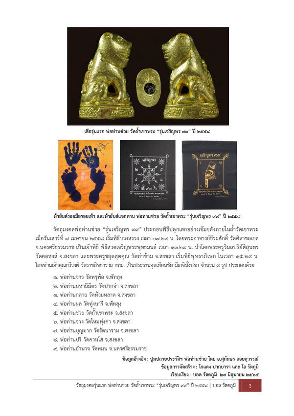 วัตถุมงคลพ่อท่านช่วย วัดถ้ำเขาพระ รุ่นเจริญพร 99