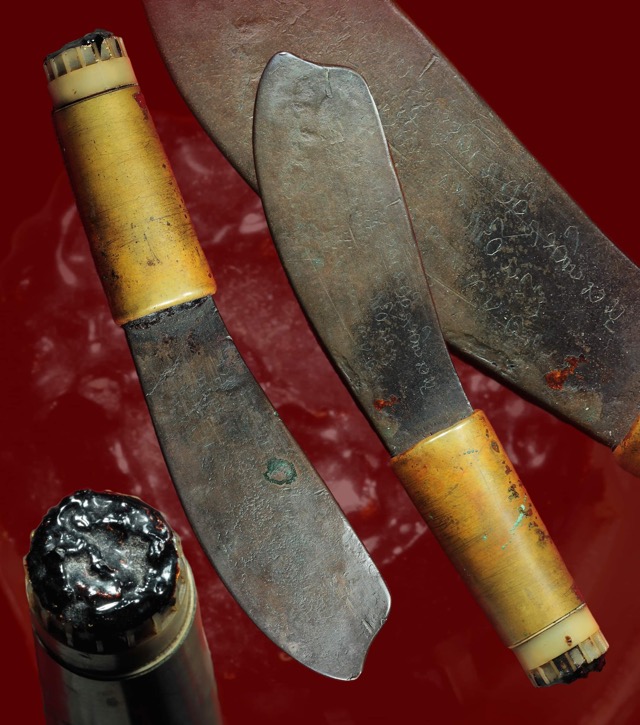 | | [ ชื่อพระ ] มีดแหกโบราณ ล้านนา | | [ รายละเอียด ] มีดแหกโบราณ ล้านนา ใบมีดทำจากทองขวานฟ้าหรือทองฟ้าผ่า เป็นโลหะที่พบตรงจุดที่ฟ้าผ่า ตามความเชื่อครูหมอ มาแต่โบราณ ใช้ ตัด ปัด แก้ ตรงที่ถูกคุณไสย ปวด บวม พอง โดยไม่ทราบสาเหตุ ด้วยความขลังของเทวดาอารักษ์ในใบมีด รวมถึงรอยจารอักขระบนใบมีด/ ด้ามที่อุดวัตถุของขลัง เพิ่มพลังด้านฤทธิ์ ทั้งป้องกัน ปัดเป่า ครบเครื่อง | [ ราคา ] ฿9 [ สถานะ ] โชว์พระ
