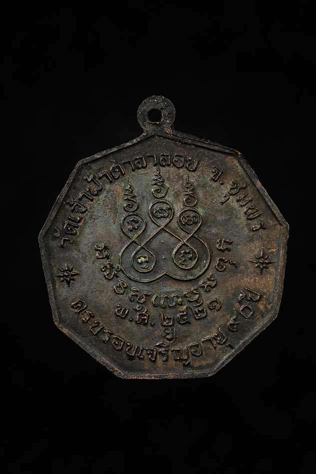 [ รายละเอียด ] เหรียญเก้าเหลี่ยม หลวงพ่อสงฆ์ วัดเจ้าฟ้าศาลาลอย ชุมพร ครบรอบเจริญอายุ ๙๐ ปี ปี ๒๕๒๑ พิเศษมีจาร 2 ตัว