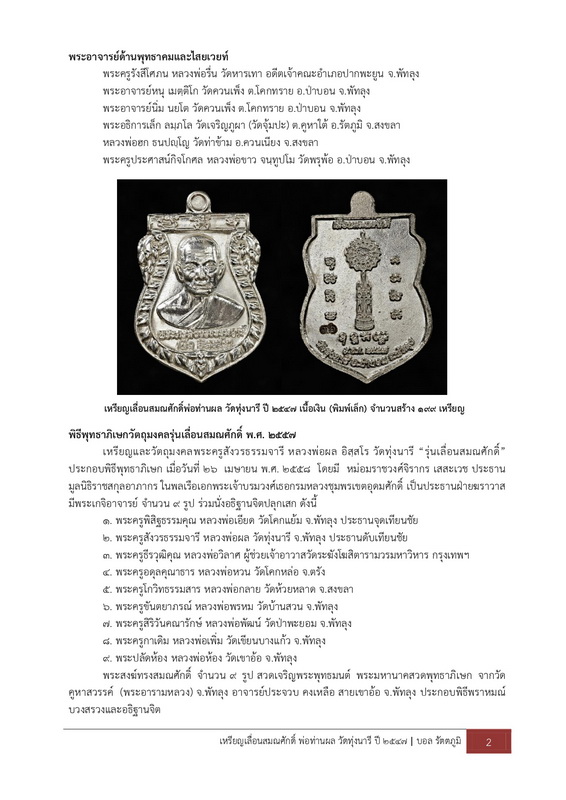 [ ชื่อพระ ] เหรียญเลื่อนสมณศักดิ์ พ่อท่านผล วัดทุ่งนารี ปี 2557