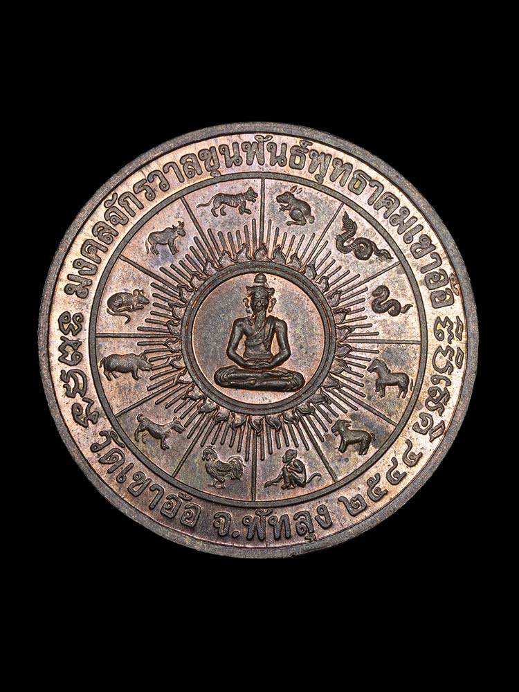 เหรียญมงคลจักรวาลขุนพันธ์พุทธาคมเขาอ้อ พิมพ์ใหญ่ วัดเขาอ้อ จ .พัทลุง ปี 2544