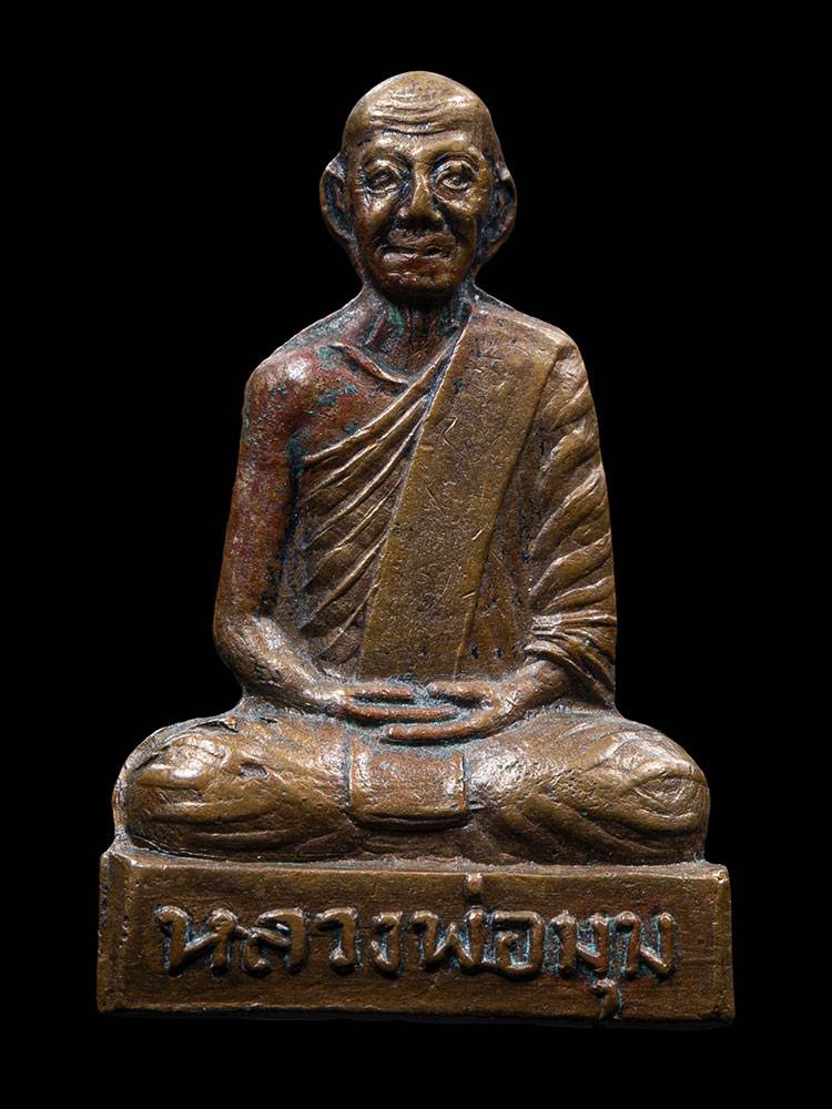 รูปหล่อปั๊มหลวงพ่อมุม วัดปราสาทเยอร์ จารหน้าหลังก้น