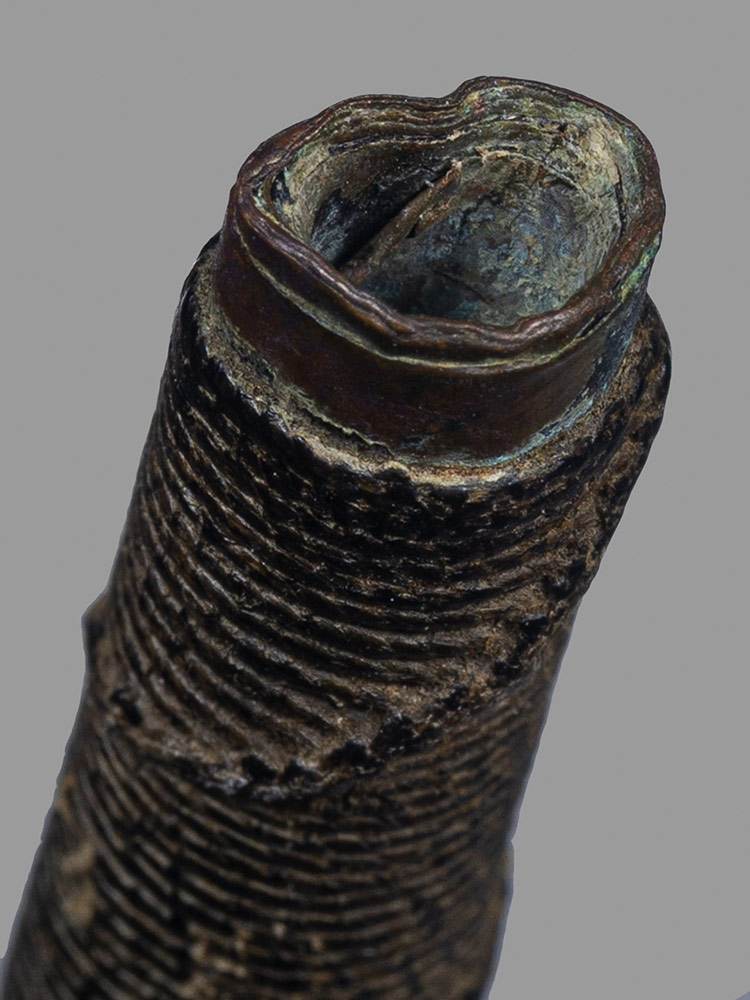[ รายละเอียด ] ตะกรุดโทน เนื้อทองแดง ถักเชือก ลงรักดำ ยาว 5 นิ้ว จัดซึ้ง