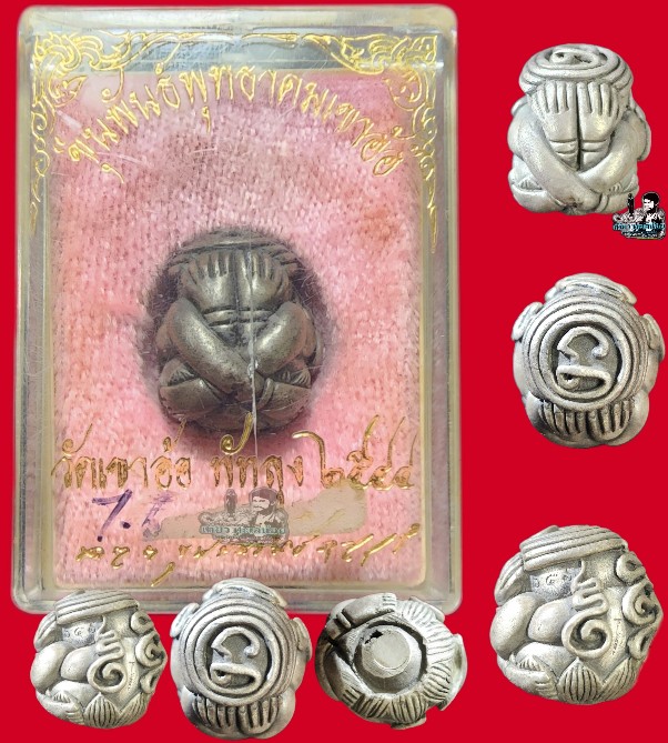 พระปิดตาเขาอ้อ ลูกอมสอดเข่าเนื้อนวะโลหะก้นเงิน รุ่นขุนพันธ์พุทธาคมเขาอ้อ วัดเขาอ้อ ปี 44