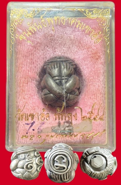 [ รายละเอียด ] พระปิดตาเขาอ้อ ลูกอมปิดตาสอดเข่า เนื้อเงินผิวโบราณอุดก้นเงิน จำนวนสร้าง988องค์รุ่นขุนพันธ์พุทธาคมเขาอ้อ วัดเขาอ้อ ปี 44 มงคลวัตถุที่ขุนพันธ์ฯ สร้างร่วมกับพ่อท่านกลั่น เจ้าอาวาส วัดเขาอ้อ และพิธีดีสุดยอด ต้องรุ่นขุนพันธ์พุทธาคมเขาอ้อนี้ครับ โลหะชนวนมวลสาร มหามงคลวัตถุรุ่น ขุนพันธ์พุทธาคมเขาอ้อ ทั้งเนื้อโลหะและเนื้อผง ล้วนแล้วแต่ใช้ส่วนผสมหลักของพระหลวงพ่อทวด รุ่น 100 ปี ขุนพันธ์รักษ์ราชเดช (ซึ่งมีชนวนโลหะอถรรพเวทย์ แร่ธาตุกายสิทธิ์ จากปลียอดทองคำ พระบรมธาตุเจดีย์ เมื่อครั้งบูรณะปลียอดทองคำ พระบรมธาตุเจดีย์ เมื่อปี 2537-2538 โดยทางกรมศิลปากร ได้มอบให้ท่านขุนพันธ์ฯ ไว้) ซึ่งมีอยู่มากมายจนไม่สามารถนำมาบรรยายในที่นี้ และยังมีโลหะชนวนมวลสารศักดิ์สิทธิ์อื่นๆ อีกมากจากพระเกจิอาจารย์ทั่วสารทิศ รวมทั้งแผ่นพระยันต์ 108 นะ 14 นะ ที่พิเศษสุดก็คือ เนื้อนวโลหะพิเศษแก่ทองได้ใช้ทองคำ 2 กิโล (น้ำหนัก 130 บาท) ผสมผสานเพื่อให้เนื้อหากลับดำสนิท นอกจากนี้ยังได้จัดสร้างเป็นเนื้อทองมหาสัตตโลหะ ตามตำรับวิชาเล่นแร่แปรธาตุสำนักเขาอ้อ คือมีสีสรรค์วรรณะ คล้ายทองคำ โดยไม่มีทองคำผสมอยู่เลย สามพิธีมหามงคล พล.ต.ต.ขุนพันธรักษ์ราชเดช เป็นศิษย์ฆราวาสเขาอ้อมาช้านานจึงยึดมั่นและเคร่งครัดในด้านพิธีกรรมอย่างยิ่ง ดังนั้นเมื่อมหามงคลวัตถุรุ่น ขุนพันธ์พุทธาคมเขาอ้อ ที่ท่านเป็นประธานฝ่ายจัดสร้างเองจึงย่อมต้องทำให้บรรลุ ถึงความศักดิ์สิทธิ์เข้มขลัง เป็นศรีแน่วัตถุมงคลที่จัดสร้างและผู้ที่มีไว้บูชาสักการะ *พิธีกรรมครั้งที่ 1 ประกอบพิธีเททองแบบโบราณตามตำรับสำนักวัดเขาอ้อ ในวันอาทิตย์ที่ 20 พฤษภาคม 2544 เวลา 9.19 น. ณ สำนักวัดเขาอ้อ โดยมีพระเกจิอาจารย์จำนวน 8 รูป นั่นปรกปลุกเสกประจำทิศ และศิษย์ฆราวาสเขาอ้อ คือ พล.ต.ต.ขุนพันธรักษ์ราชเดช อาจารย์ฉันท์ทิพย์ พันธรักษ์ราชเดช และอาจารย์ประจวบ คงเหลือ ร่วมกันประกอบพิธีกรรมอ่านโองการณ์บวงสรวงอัญเชิญเทพยดา เจ้าป่าเจ้าเขา บูรพคณาจารย์สำนักเขาอ้อ **พิธีกรรมครั้งที่ 2 ประกอบพิธีมหาพุทธาภิเษก ณ พระวิหารหลวงวัดพระมหาธาตุวรวิหาร จ.นครศรีธรรมราช ในวันอาทิตย์ที่ 5 สิงหาคม 2544 เวลา 9.19 น. โดยมีพระเกจิอาจารย์ชื่อดังทั่วภาคใต้นั่งปรกบริกรรมภาวนา โดยมี พล.ต.ต.ขุนพันธรักษ์ราชเดช เป็นบัณฑิตเจ้าพิธีกรรม ***พิธีกรรมครั้งที่ 3 ประกอบพิธีปลุกเสกภายในถ้ำฉัตรฑัณฑ์ สำนักวัดเขาอ้อในวันอาทิตย์ที่ 12 สิงหาคม 2544 เวลา 9.19 น. โดยมีพระเกจิอาจารย์ชื่อดังสายเขาอ้อนั่นปรกปลุกเสก และศิษย์ฆราวาสเขาอ้อ คือ พล.ต.ต.ขุนพันธรัก