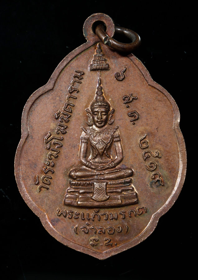 เหรียญใบโพธิ์ท่านเจ้าคุณนร หลังพระแก้วมรกตจำลอง ปี 2519
