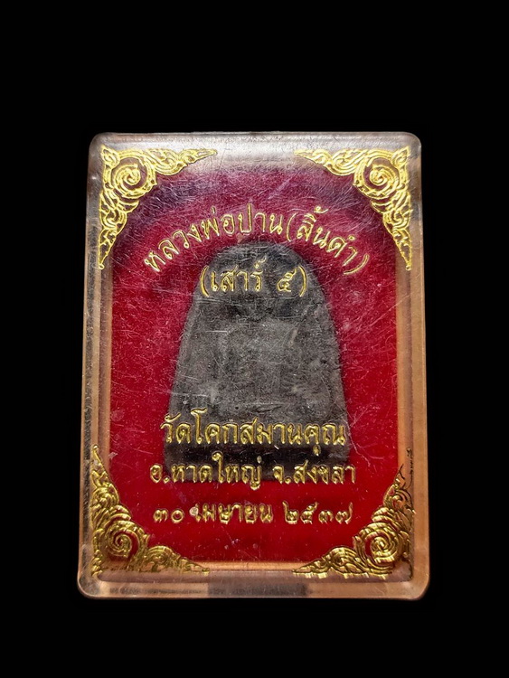 [ รายละเอียด ] พระผงรูปเหมือนหลวงพ่อปาน (ลิ้นดำ) วัดโคกสมานคุณ อ.หาดใหญ่ จ.สงขลา พิธีเสาร์ 5 วันที่ 30 เมษายน 2537 ท่านพระครูสมานคุณากร (หลวงพ่อจันทร์ จนฺทวํโส) เป็นผู้จัดสร้าง เพื่อบูชาคุณของหลวงพ่อปานซึ่งเป็นพระอุปัชฌาย์และยังได้ร่ำเรียนพระธรรมวินัย ตลอดจนคาถาอาคมอยู่เป็นเวลานานหลายปี ทั้งปรนนิบัติรับใช้หลวงพ่อปานอยู่นานหลายปีจวบจนวาระสุดท้ายถึงกาลมรณภาพ หลวงพ่อจันทร์ ท่านได้เก็บรวบรวมผงต่าง ๆ ว่านเก่า ตลอดจนวัตถุธาตุอันเป็นมงคลต่าง ๆ เป็นเวลานานหลายปี และยังมีดอกไม้ ดอกมะลิอันเป็นมงคลในพิธีที่พระบาทสมเด็จพระเจ้าอยู่หัว รัชกาลที่ ๙ เมื่อครั้งเสด็จพระราชดำเนินในพิธียกช่อฟ้าพระอุโบสถวัดโคกสมานคุณ นำมาเป็นส่วนผสม รวมทั้งผงว่านที่แตกหักของพระเครื่องหลวงพ่อปาน ปี ๒๕๐๖ และนำทูลถวายพระบาทสมเด็จพระเจ้าอยู่หัว รัชกาลที่ ๙ มาเป็นส่วนผสมหลักในการจัดสร้างสร้างด้วย มวลสารในการสร้างพระผงเนื้อว่านหลวงพ่อปาน (ลิ้นดำ) ที่สำคัญ อาทิ - ว่านชนิดต่าง ๆ ๑๐๘ ชนิด - กำยาน ๕ กิโลกรัม - ผงขี้ธูปวัดพะโคะ - เปลือกไม้ยางที่หลวงปู่ทวดเคยวางไม้เท้า - ผงตะไบเงินยวง - ผงใบต้นสังกรณี - ผงใบยอที่งอกบนต้นไม้อื่น เรียกว่า "ยอไม่ตกดิน" - ผงปูนที่สกัดจากยอดพระธาตุ จ.นครศรีธรรมราช - ดอกสวาท - ดอกใบรักซ้อน - กาฝากรักซ้อน - กาฝากรักป่า - ดินกากยายักษ์ - ดินโป่งปูที่ปิดรูปู ๑๐๘ รู - ดอกไม้บูชาพระค่ามพระอารามต่าง ๆ ในกรุงเทพฯ - ผงเก่าที่เก็บไว้จากหลวงพ่อปาน (ลิ้นดำ) ที่เหลือมาจากการจัดสร้างวัตถุมงคลเมื่อปี ๒๕๐๖ - ดอก / ใบ / ต้นพุทธรักษา - ดอกสายหยุด - ใบเสียบต้นใหญ่ที่ฝังรกหลวงปู่ทวด - ไข่หินถ้ำพระธาตุเขาสายร้อยยอด จ.ประจวบคีรีขันธ์ - ข้าวสารหิน จ.ลพบุรี - ดอกพญางิ้วดำ - ธาตุแร่เหล็กน้ำพี้ จ.อุตรดิตถ์ - เพชรเขาพระงาม จ.เพชรบุรี - ขี้ธูปเขาวงพระจันทร์ จ.ลพบุรี - ขนมปังหรือขนมโคคนธรรพ์ในถ้ำอุตรดิตถ์ - ดินกรุพระนางตราท่าศาลา จ.นครศรีธรรมราช อายุกว่า ๘๐๐ ปี พระเนื้อว่านหลวงพ่อปาน (ลิ้นดำ) รุ่นนี้ มีลักษณะเป็นรูปสามเหลี่ยมหน้าจั่ว มีขนาดความสูง ๓ ซม. ฐานล่างกว้าง ๒ ซม. ตรงกลางจะเป็นรูปองค์หลวงพ่อปาน ห่มจีวรเฉวียงบ่า พาดสังฆาฏิในท่าจับหัวเข่า นั่งอยู่บนฐานเขียง ด้านหลังองค์พระจะนูนคล้ายหลังเบี้ย มีอักษรภาษาไทยอ่านว่า “หลวงพ่อปาน วัดโคกสมานคุณ" เนื้อออกโทนสีดำอมเทา และสีดำอมเขียว ประกอบพิธีพุทธาภิเษกเมื่อวันเสาร์ที่ ๓๐ เมษายน ๒๕๓๗ (วันเสาร์ห้า) เดือน ๕ ขึ้น ๕ ค่ำ ถือเป็นวันมหาอุด มหาโชค และวันที่กล้าแข็ง สามารถบันดาลให้เกิดอิทธิปาฏิหาริย์ได้อย่างน่าอัศจรรย์ โดย