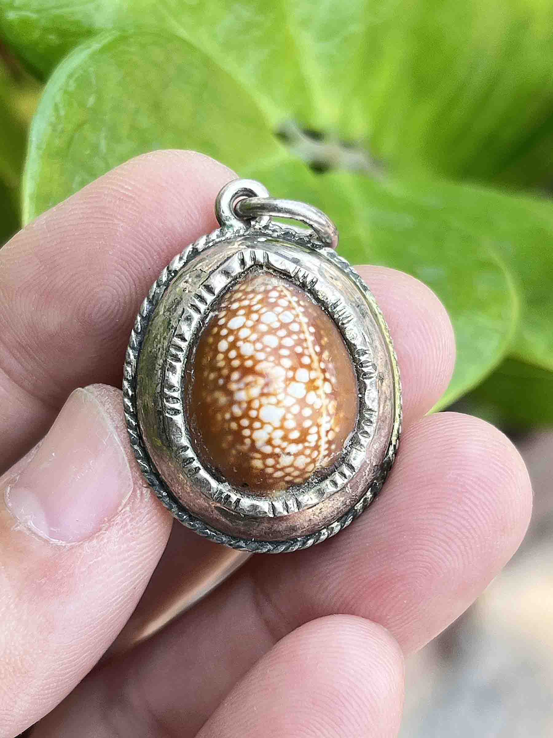 แผ่นโลหะที่จารอักขระมีทั้ง(ทองเหลือง/ทองแดง/เงินหายากสุด) ปิดทับด้วยชันโรงตายพรายเอกลักษณ์จะเป็นเบี้ยเปลือย