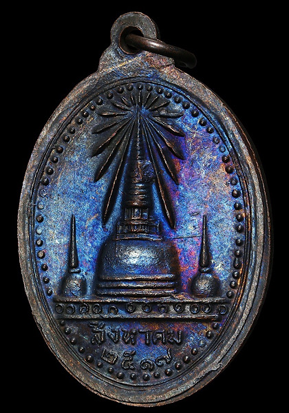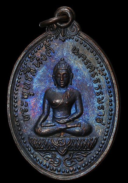 [ ชื่อพระ ] เหรียญพระพุทธสิหิงค์ เนื้อทองแดงรมดำ พ.ศ.๒๕๑๗ จ.นครศรีธรรมราช นิยมรังผึ้ง