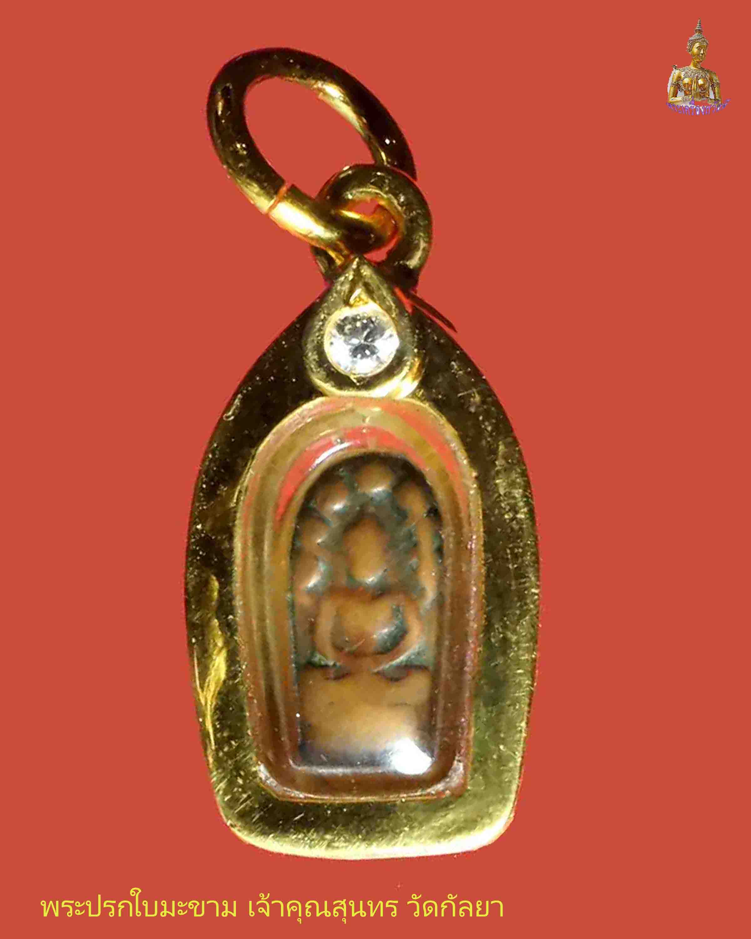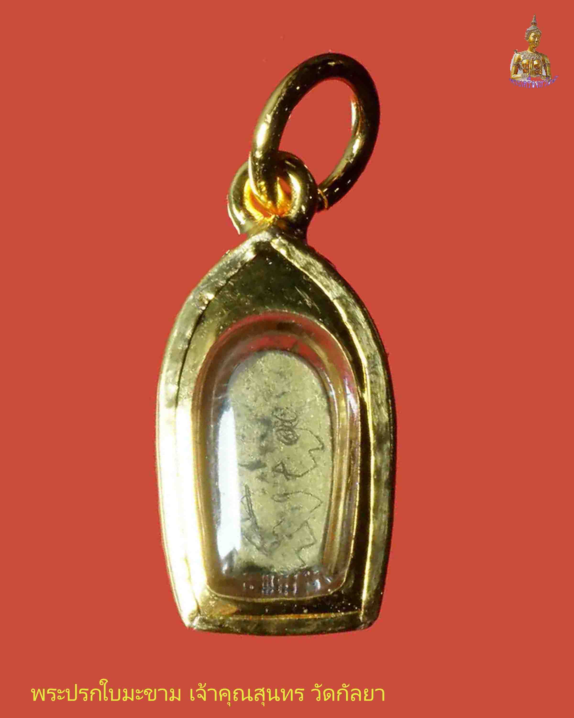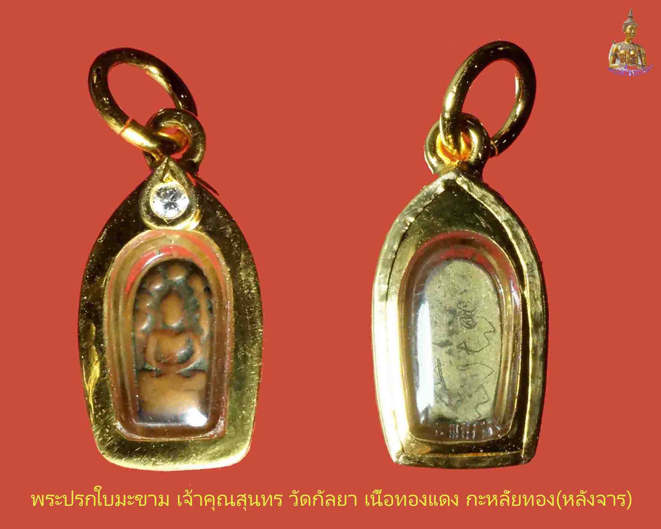 พระปรกใบมะขาม เจ้าคุณสุนทร วัดกัลยา เนื้อทองแดงกะหลั่ยทอง (พิเศษหลังจาร)
