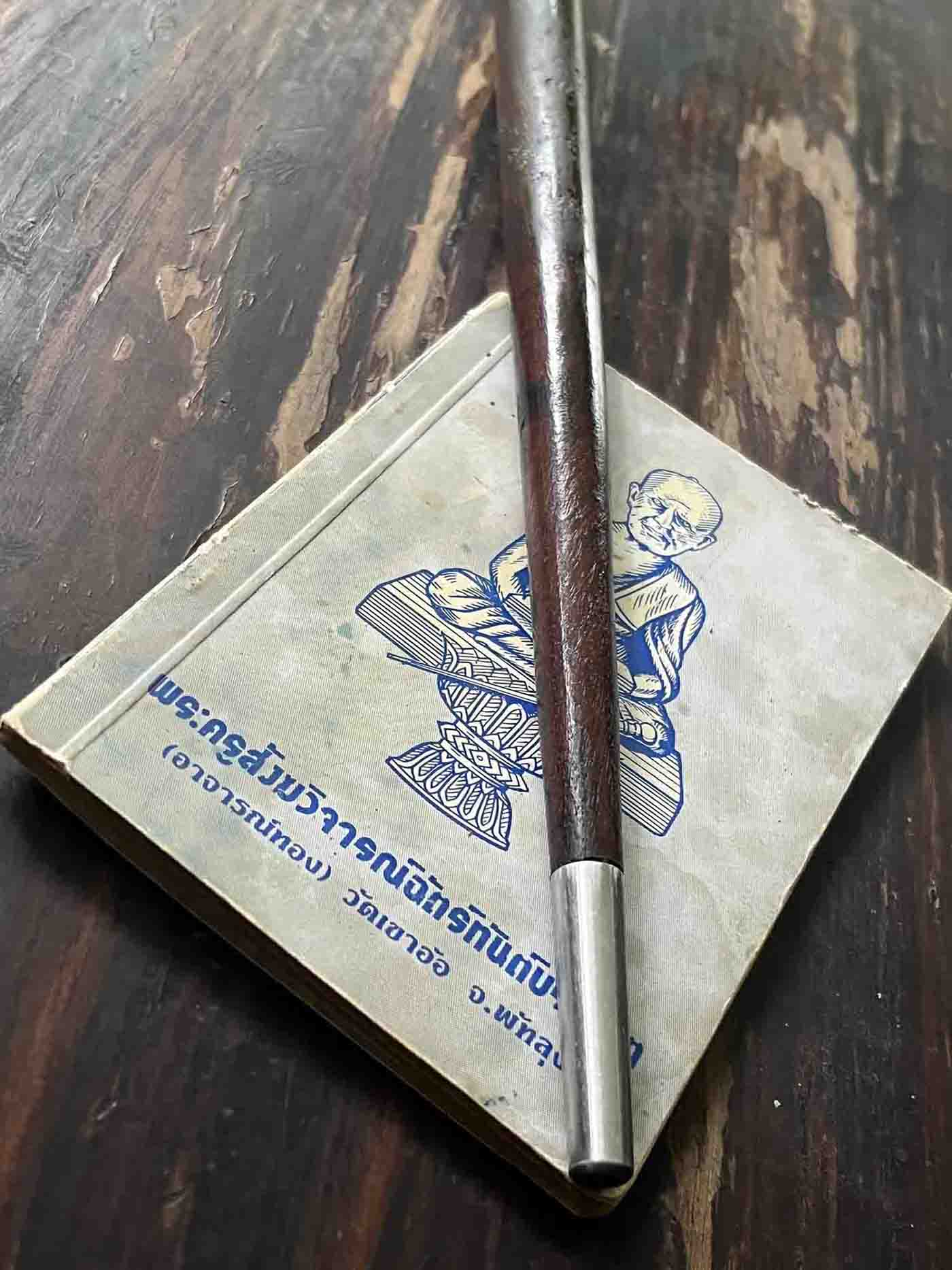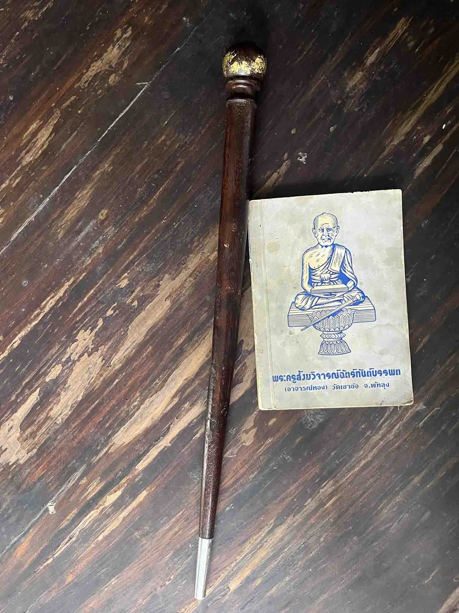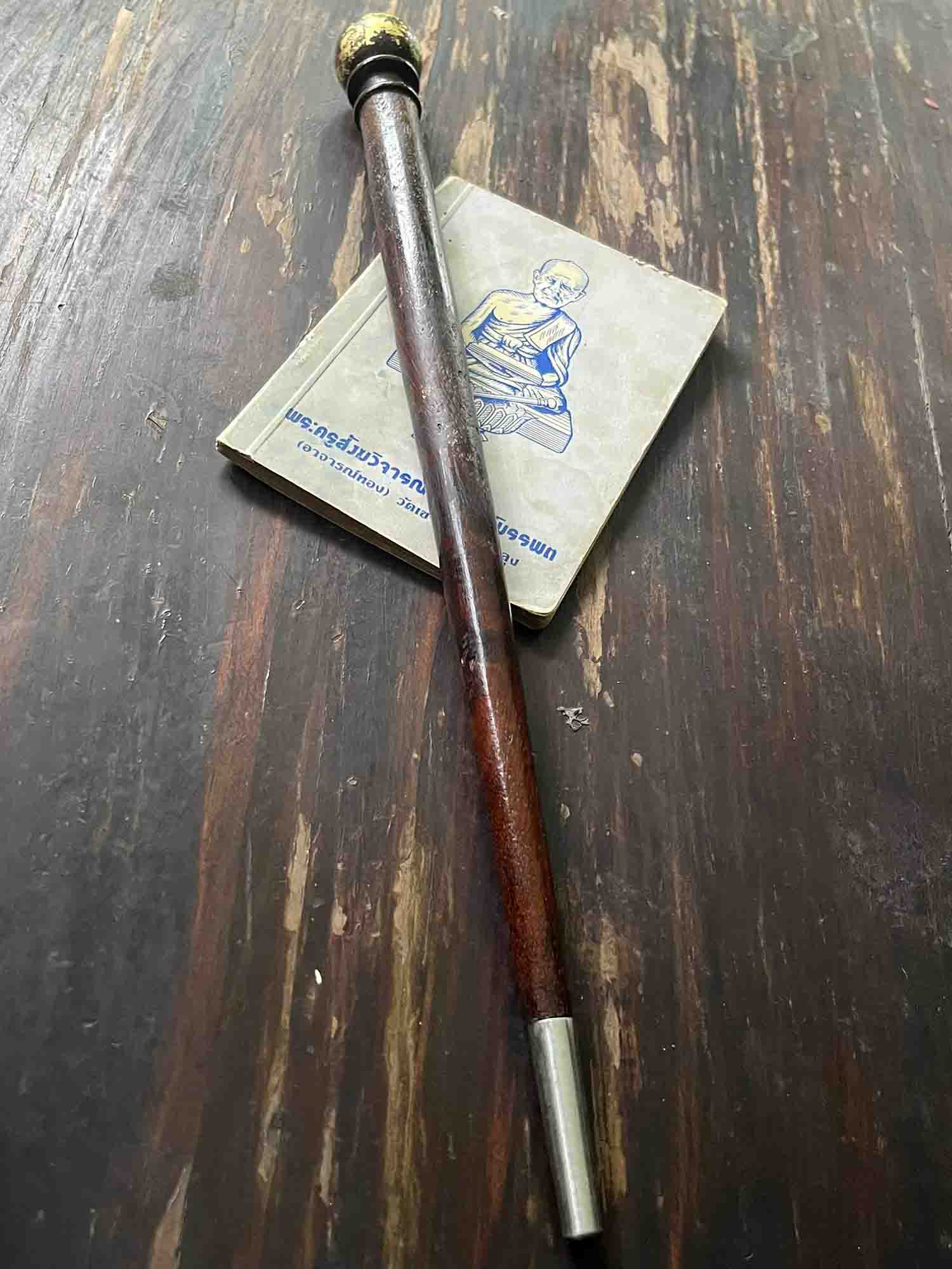 | | [ ชื่อพระ ] ไม้ครูอาจารย์ชุม ไชยคีรี ขนาดใหญ่ยาว 12 นิ้วครึ่ง (สำหรับเพศชาย) | | [ รายละเอียด ] (ไม้เท้ากายสิทธิ์) ไม้ครูอาจารย์ชุม ไชยคีรี ขนาดใหญ่ยาว 12 นิ้วครึ่งเล่มนี้เป็นไม้มะค่าฟ้าผ่า (หายากมาก) เท่าที่พบมีสองขนาดคือประมาณ 1 ฟุต หรือ 12 นิ้วครึ่ง (ขนาดยาว) และประมาณ 5 นิ้ว (ขนาดสั้น) สร้างจากไม้มงคลหลายชนิด เช่น ราชพฤกษ์ ด้านหัวจะเจาะเพื่อบรรจุตระกรุด แล้วอุดด้วยผง ด้านปลายจะบรรจุผงต่าง ๆ แล้วใช้แผ่นเหล็กยาว 1 นิ้วปิดทับไว้ อาจารย์ชุม ไชยคีรี อาจารย์ตำรากุญแจไสยศาสตร์ ไขความลับ วิชาลึกลับ แห่งศาสตร์อิทธิฤทธิ์ อิทธิปาฏิหาริย์ ศาสตร์อัศจรรย์ ทำพิธีครั้งพิเศษ สร้างไม้เท้ากายสิทธิ์ ชี้ต้นตาย ชี้ปลายเป็น ตามตำราพิชัยสงคราม ซึ่งเป็นตำราคู่บ้านคู่เมืองมาตั้งแต่ครั้งโบราณ แม้ตามตำราจะพรรณนาคุณไว้ตามวิสัยของพระอาจารย์เจ้า ผู้มีญาณสมาบัติ ซึ่งคนสมัยนี้ฟังแล้วเขาไม่สนใจว่าจะเป็นไปได้ แต่อาจารย์ชุม ไชยคีรี นักค้นคว้า ที่เคยค้นคว้าวิชาไสยาสตร์ไม่หน้าเชื่อ สร้างวัตถุมงคลหรือใช้คาถาอาคมพิสูจน์ความจริง เรียกร้องให้ผู้อื่นที่สนใจได้มาแล้ว ทำให้สิ่งไม่น่าเชื่อให้เป็นจริง อย่างอศัจรรย์มาแล้ว ตามตำราไม้เท้ากายสิทธิ์ ชี้ต้นตาย ชี้ปลายเป็น ก็พรรณาคุณวิเศษไว้ว่ามีคุณประโยชน์ต่อประเทศชาติอย่างสูงสุด นักรบบรรพบรุษของชาติไทยเคยใช้ได้ผลมาแล้ว แม้การรบสมัยปัจจุบันการรบจะผิดแผกแตกต่างกับการรบสมัยโบราณหรือภัย อันตรายนานาชนิดที่กำลังคุกคามสุจริตชนอยู่ในปัจจุบัน จนทุกคนนึกว่าป้องกันได้ยาก เมื่อพิจารณาถอยหลังไปถึงวิธีกำจัดภัยด้วยการนำเอาอิทธิฤทธิ์ อิทธิปาฏิหาริย์ของพระสัมมาสัมพุทธเจ้า ที่พระองค์ชนะมารมาแล้ว ที่พระอริยะเจ้าทรงปฏิบัติตามชนะศัตรูหมู่มารมาแล้ว ถ้าเราจะปฏิบัติตาม ถือหลักว่า คนในพระพุทธศาสนาต้องแสดงฤทธิ์และอำนาจแห่งธรรมยังมีอยู่ ขวัญของบุคคลในพระพุทธศาสนาก็คงจะดีขึ้น นักรบของชาติก็มีกำลังใจในการต่อสู้ ขอให้ถือว่า ทุกคนในชาติเป็นนักรบทั้งหมดแล้วแต่จะเป็นนักรบของชาติแนวหน้า หรือ แนวหลัง แม้แต่ภิกษุ สามเณร หรือ อุบาสก อุบาสิกา ก็เป็นนักรบ ทางธรรมะคือ รบเพื่อชนะกิเลส อ้นเป็นข้าศึกภายใน เพื่อทรงพระพุทธศาสนาไว้ อาจารย์ชุม ไชยคีรี อาจารย์ไสยาศาสตร์ท่านคงพูดและทำอย่างนักไสยศาสตร์ ให้ผู้เชื่อถือมั่นรับรองว่า คุณพระเป็นที่พี่งกำจัดภัยได้จริงแก่ผู้เข้าถึง ไม้เท้าการยสิทธิ์ขอให้มีฤทธิ์ มีอำนาจ เป็นทิทย์อำนาจในทางที่ชอบด้วยศีลธรรมผู้ใดนำไปใช้ทางที่ดีที่ชอบขอคุณพระ และ คุณมหาเทพ จ