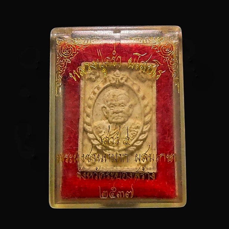 [ รายละเอียด ] พระผงชานหมากรูปเหมือนหลวงปู่คร่ำ วัดวังหว้า อ.แกลง จ.ระยอง ผสมจีวร และเส้นเกษา ปลุกเสกพิธีเสาร์ 5 ปี 2537