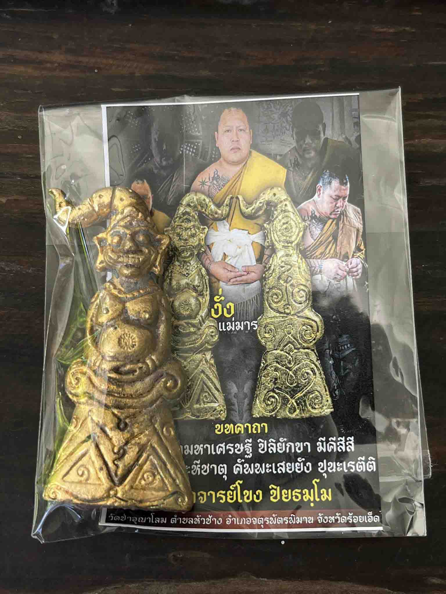 | | [ ชื่อพระ ] งั่ง แม่มาร พระอาจารย์โขง ปิยธฺมโม วัดป่าอุณาโลม | | [ รายละเอียด ] งั่ง แม่มาร พระอาจารย์โขง ปิยธฺมโม วัดป่าอุณาโลม (โนนค้อ) อำเภอจตุรพักตรพิมาน จังหวัดร้อยเอ็ด เนื้อโลหะผสม ชะนวนมวลสาร ทั้งสิ้น จำนวนจัดสร้าง ๑๐๐๐ ตน ดั่งวลีเด็ด เครื่องรางสายอีสานอันเป็นที่ยอมรับในหมู่ศิษย์ ยุคปัจจุบันที่ว่า... เสือดีวัดสัง(หลวงพ่อไฉน), งั่งขลัง วัดป่าอุณาโลม(พระอาจารย์โขง) ซึ่ง งั่งแม่มาร ชุดนี้ พระอาจารย์บรรจุมวลสารสำคัญใต้ฐาน พร้อมบริกรรมเสกประจุแต่ละตน ด้วยตัวท่านเองทุกตน ...อธิษฐานใช้ตามใจปราถนา ไม่มีข้อห้ามใดๆ บนได้ ขอได้ ดั่งคำว่า "ไหว้ขอ รอรับ" | [ ราคา ] ฿9 [ สถานะ ] โชว์พระ