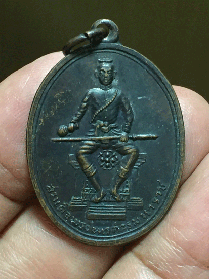 [ ชื่อพระ ] เหรียญสมเด็จพระนเรศวรมหาราช หลังยันต์พระพุทธ หลวงพ่อสี วัดปากคลองบางครก จ.เพชรบุรี ปี 2515
