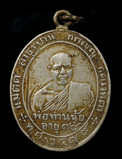 เหรียญพ่อท่านนุ้ย วัดอัมพาราม(วัดม่วง) สุราษฎร์ฯ บล็อกหน้าต่าง เนื้ออัลปาก้า ปี 2479