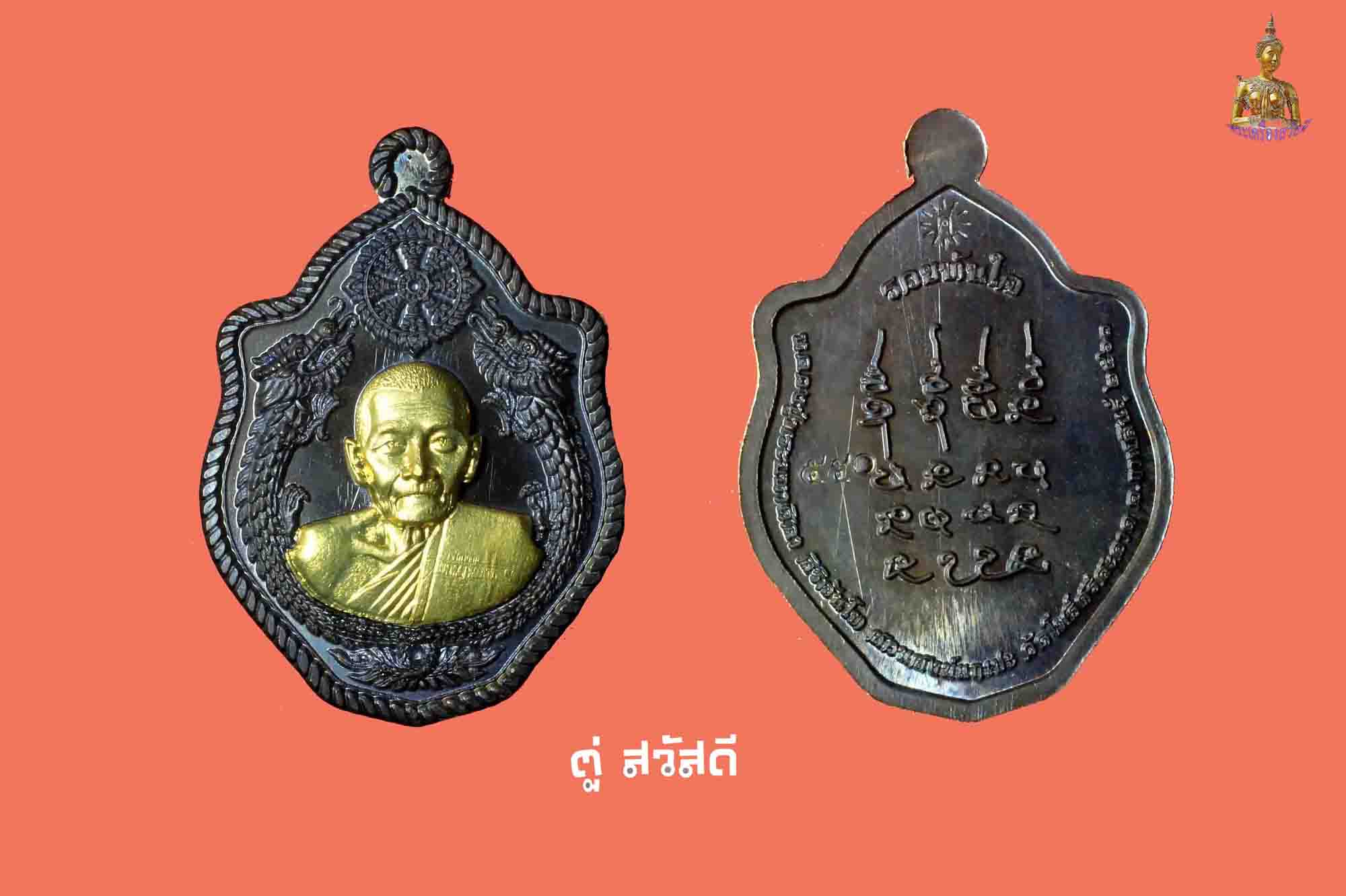 [ ชื่อพระ ] เหรียญ "มังกรคู่" รุ่น รวยทันใจ ลป.มหาศิลา