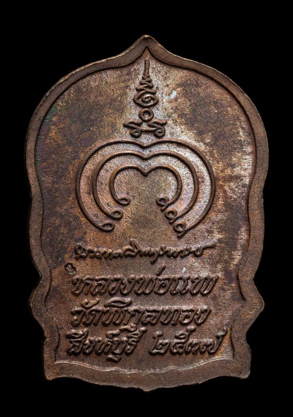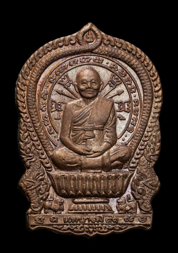 เหรียญนั่งพานร่ำรวย รุ่นแรก หลวงปู่หุน วัดบางผึ้ง เนื้อตะกั่ว ปี 2554