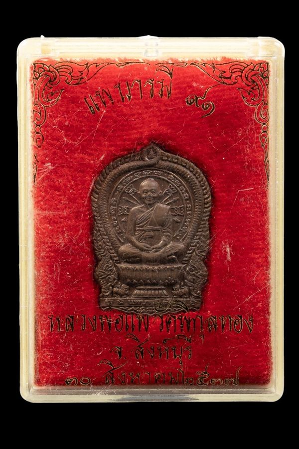 เหรียญนั่งพานเล็ก หลวงพ่อแพ วัดพิกุลทอง แพบารมี 91 ปี 2537