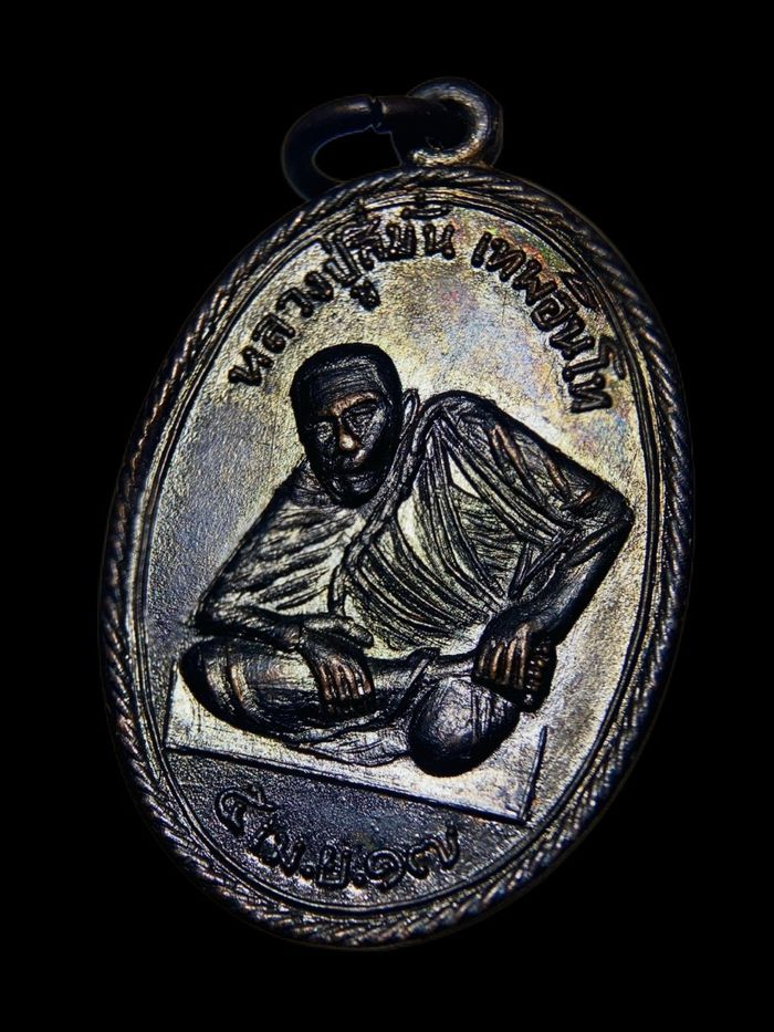 เหรียญรุ่นแรก พ่อท่านกลาย วัดห้วยหลาด ปี 2554 ทองแดงรมดำ (เหรียญแชมป์งานสุราษฎร์ฯ)