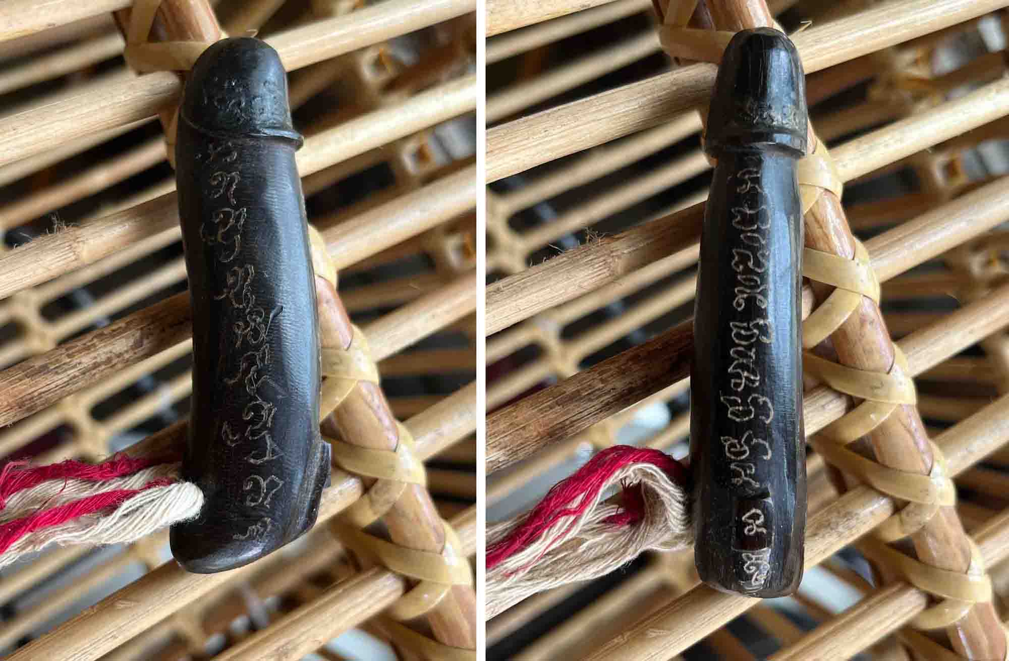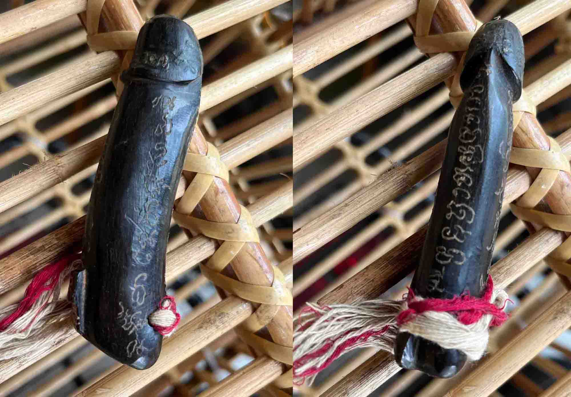 | | [ ชื่อพระ ] คุณปลัดเขาควายแกะศิลป์เพชรพญาธร พ่อท่านจำรัส วัดท่าล้อน สฏ. | | [ รายละเอียด ] คุณปลัดเขาควายแกะ อุดตะกรุด เขย่ามีเสียง ศิลป์เพชรพญาธร ... ปลัดขิก พระครูรัตนธรรมคุณ วิริโย หรือพระอาจารย์จำรัส วัดรัตนาราม(ท่าล้อน) อ.พุนพิน จ.สุราษฎร์ธานี เจ้าตำรับขุนแผนพรายกุมาร(พรายธาตุ) แห่งภาคใต้ ประวัติพระอาจารย์ท่านเป็นพระเกจิฯ ที่มีวิทยาคมสูงอีกรูปหนึ่ง ของ จ.สุราษฏร์ธานี ทั้งสรีระสังขาร ไม่เน่าเปื่อย บรรจุในโลงแก้วให้ลูกศิษย์/ผู้ศรัทธาได้บนบาน กราบไหว้ ในปัจจุบัน .. ว่ากันว่า ท่านเสกปลัดขิก วิ่งทวนน้ำได้ และขลังไม่แพ้สำนักใดๆ ตามประวัติไม่ทราบว่าท่านเรียนวิธีทำปลัดฯ มาจากที่ใด แต่ได้ฟังคาถาปลุกเสกของท่านจากลูกศิษย์ใกล้ชิดที่อดีตเคยบวชเป็นเณรรับใช้สมัยท่านดำรงขันธ์ซึ่งหวงแหนไม่ยอดให้จดบันทึกแต่ฟังคาถาแล้ว ตรงกับคาถาปลุกเสกของหลวงพ่อเหลือ วัดสาวชะโงก ไม่ผิดเพี้ยน จึงเก็บไว้เป็นปริศนากันต่อไปฯ ในส่วนของปลัดขิก อาจารย์จำรัส ท่านมีหลายแบบ มีเอกลักษณ์ที่ลอยจารเต็มทั้งตัว ชิ้นนี้จะเป็นศิลป์เพชรพญาธร มีเม็ดไข่ ด้านบนมีหางเล็กๆ แกะจากเขาควาย ขนาดยาว ๔ นิ้ว พุทธคุณเด่นทั้งด้านค้าขาย เสี่ยงโชค ป้องกันเขี้ยว/งา คุณไสย ภูติผี สิ่งที่มองไม่เห็น ฝนเป็นยา แช่ทำน้ำมนต์ล้างเสนียดจัญไร/ ประพรมขายของ รวมถึงด้านคงกระพันแคล้วคลาดปลอดภัยก็มีปรากฎ ท่านลงไว้ครบหมด อุปเท่ห์วิธีใช้.- สมัยโบราณให้ ผูกเอวเป็นมหารูด ต่อสู้ ค้าขายหาเงิน(ทำกิจกรรม)ไว้หน้า, ไม่กล้า(หลบหนี)ไว้ข้างหลัง, หาเจ้าหานายผู้ชายไว้ทางขวา, หาอิตถีนารีทางเสน่ห์ผู้หญิงไว้ทางซ้าย ...แต่ปัจจุบันวิวัฒนาการขึ้นจะประยุกต์วิธีพกพาติดพวงกุญแจ ใส่กระเป๋ากางเกง ก็ได้ไม่มีเสื่อม ตามสะดวกขอให้ศรัทธา (เครื่องรางของขลังไม่ใช่เสื้อผ้าคิดจะใส่ก็ใส่ จึงให้หมั่นเรียกหมั่นปลุก เมื่อมีความศรัทธาปาฏิหาริย์ก็จะบังเกิด) กราบเท้าพระอาจารย์จำรัส วิริโย วัดท่าล้อน พุนพิน สุราษฯ หากผิดพลาดทางข้อมูล/ประวัติ ศิษย์นายจักริน เลาวพงศ์(Tu_Sawasdee) ขอกราบขออภัยมา ณ ที่นี้ | [ ราคา ] ฿9 [ สถานะ ] โชว์พระ