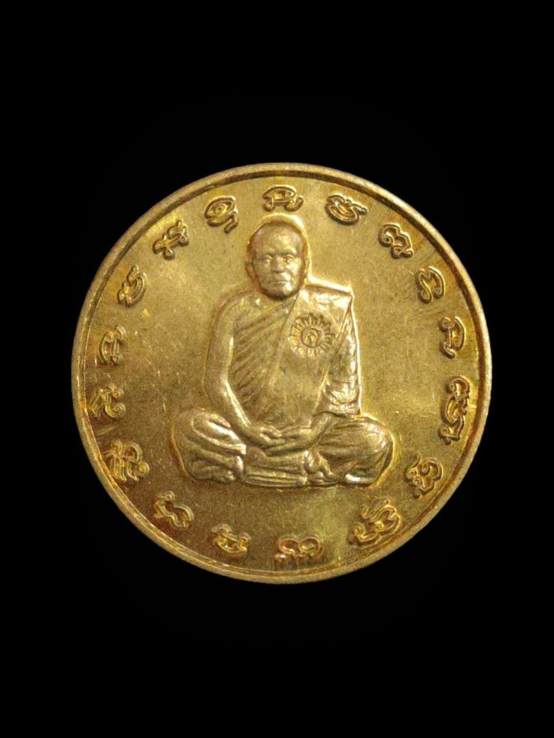 เหรียญนั่งโต๊ะ ลป.เหมือน วัดกำแพง จ.ชลบุรี กะไหล่ทอง ปี 2527