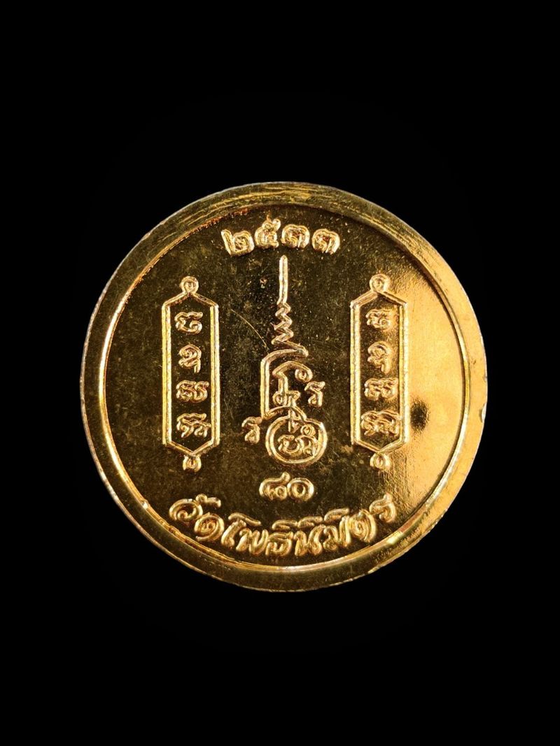 เหรียญนั่งโต๊ะ ลป.เหมือน วัดกำแพง จ.ชลบุรี กะไหล่ทอง ปี 2527