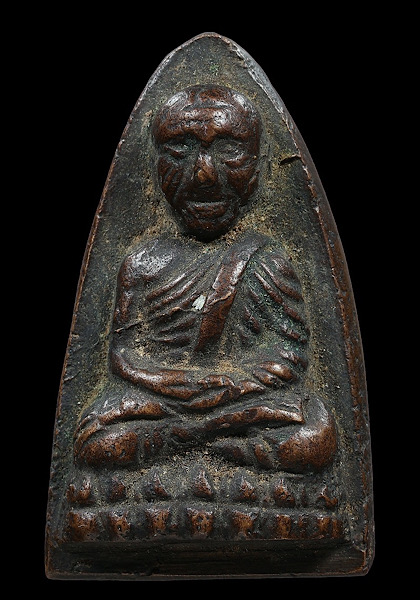 พระกลีบบัวหลวงพ่อทวด วัดช้างให้ รุน1 ปี2507 เนื้อทองเหลืองรมดำ..(3)