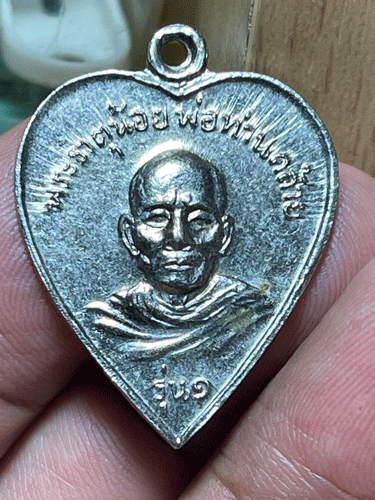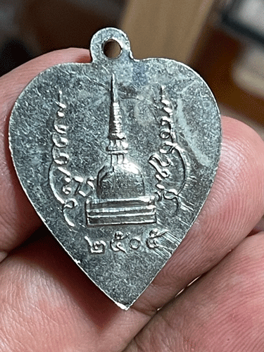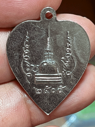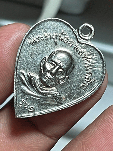 [ ชื่อพระ ] เหรียญหัวใจ พ่อท่านคล้าย วัดพระธาตุน้อย ปี05 อัลปาก้า