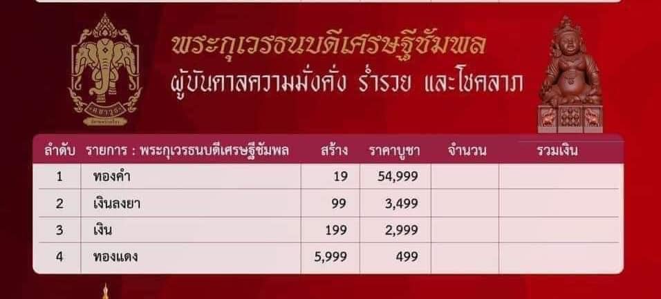 พระกุเวร ธนบดี เศรษฐีชัมพล เนื้อทองแดง